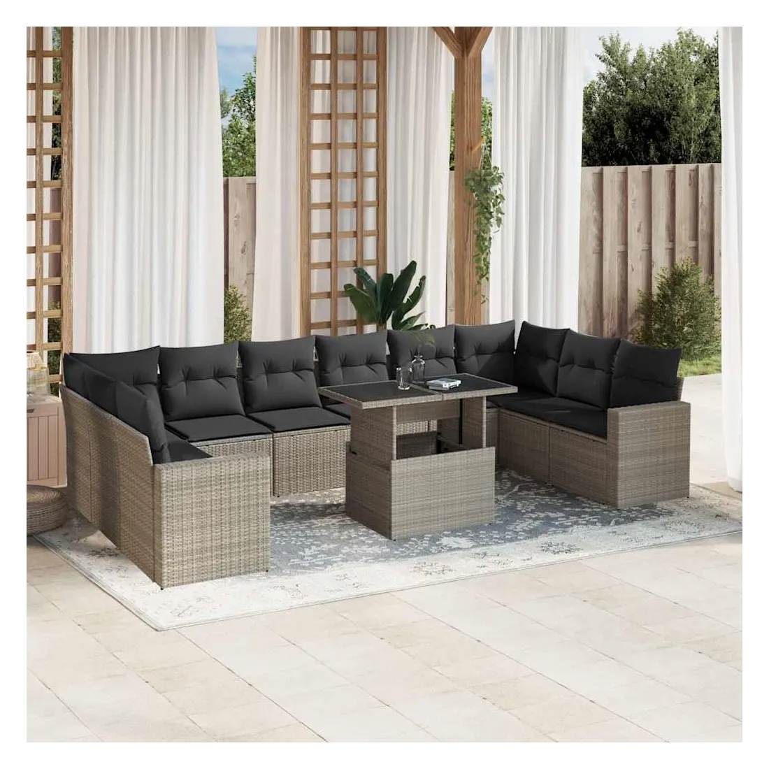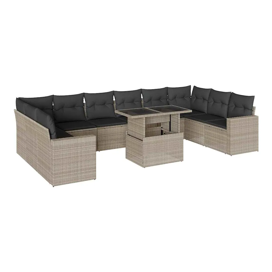 Salon de jardin 11 pcs avec coussins gris clair résine tressée