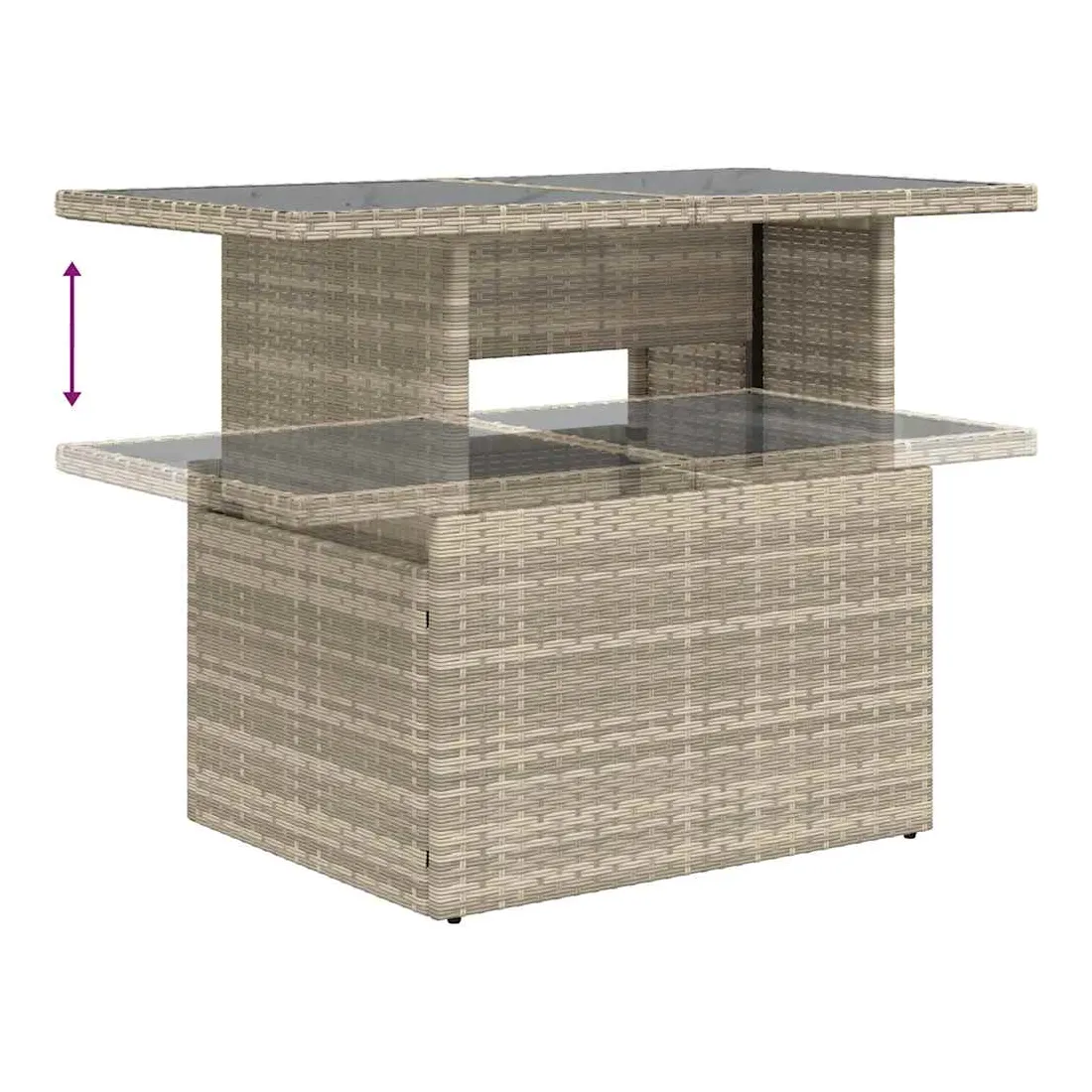 vidaXLCet ensemble de canapés de jardin est le complément parfait de votre arrière-cour, terrasse ou patio, offrant un espace confortable et accueillant pour discuter avec la famille et les amis ou simplement se détendre et profiter de l'extérieur. Matériau durable : la résine tressée, également connue sous le nom de poly rotin, est un matériau synthétique solide et nécessitant peu d'entretien qui ressemble au rotin naturel. Elle est légère, facile à nettoyer et couramment utilisée pour les meubles d'extérieur en raison de sa durabilité et de ses propriétés de résistance aux intempéries.Dessus de table réglable : le dessus de table peut être soulevé pour rendre la table plus haute, ce qui transforme la table d'extérieur d'une table basse à une table de salle à manger. Elle est parfaite pour recevoir des invités ou prendre des repas à l'extérieur.Expérience d'assise confortable : ce mobilier d'extérieur, doté de coussins épais, offre une expérience d'assise confortable.Housse amovible et lavable : ces coussins de siège sont dotés de housses amovibles pour un lavage et un entretien faciles.Conception modulaire : cet ensemble de meubles d'extérieur a une conception modulaire, ce qui le rend complètement flexible et facile à déplacer, afin que vous puissiez créer un agencement de meubles d'extérieur personnalisé. Bon à savoir :Pour que vos meubles d'extérieur restent beaux, nous vous recommandons de les protéger avec une housse imperméable.