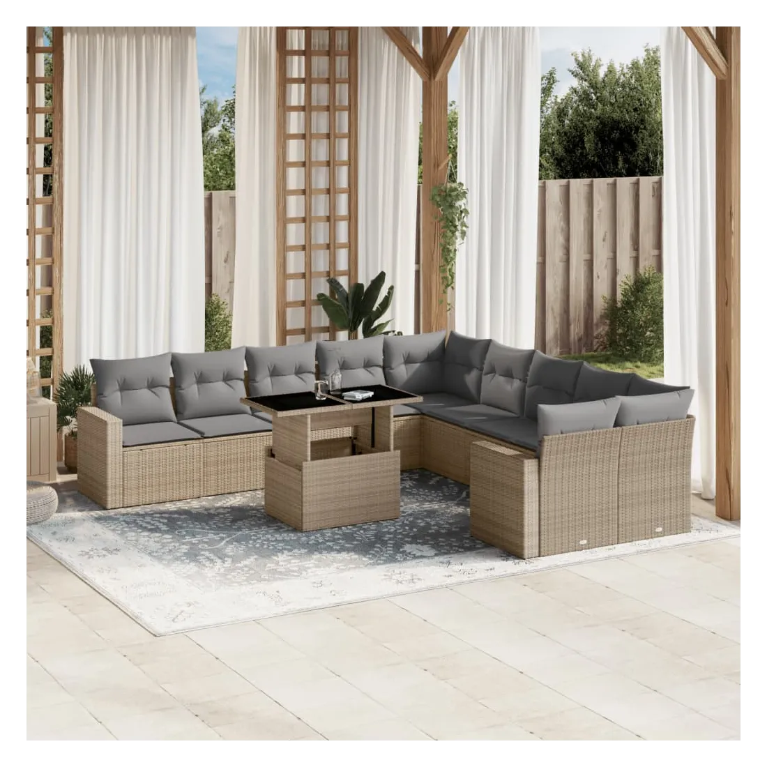 Salon de jardin 11 pcs avec coussins beige résine tressée