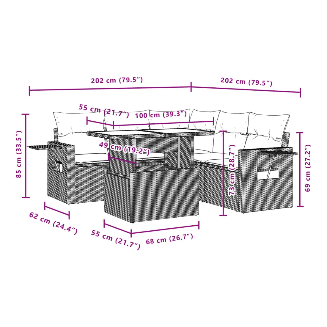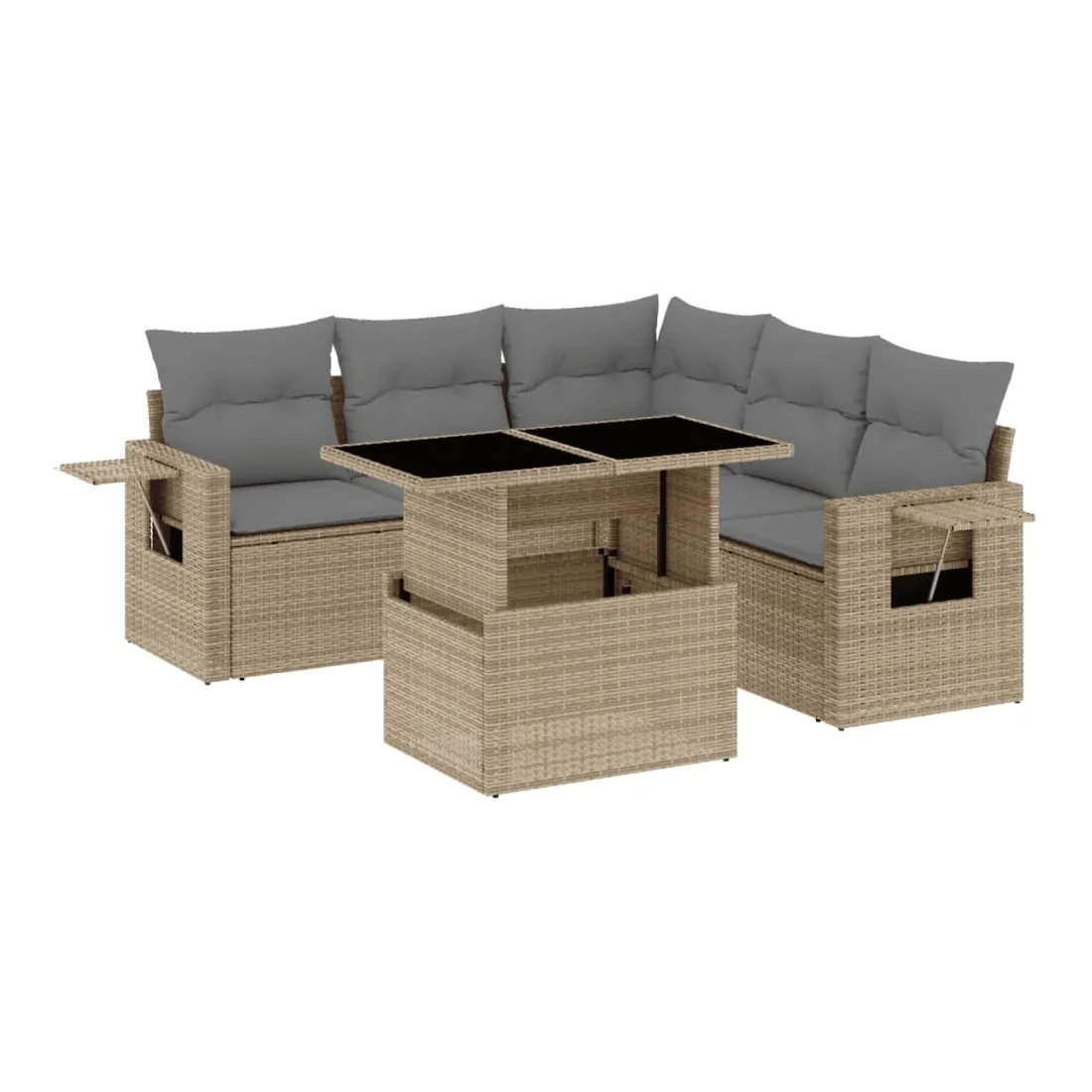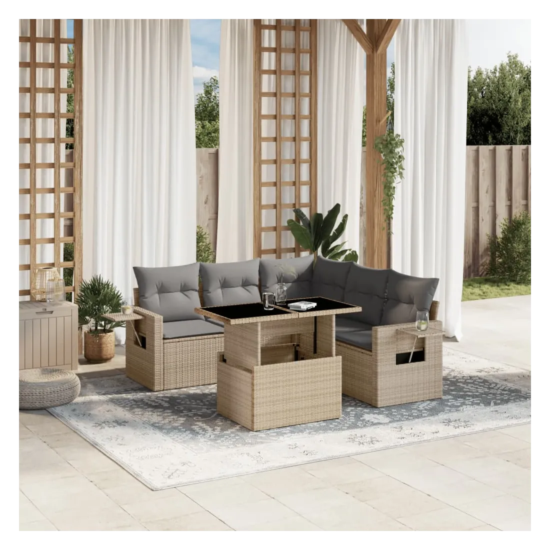 Cet ensemble de canapés de jardin est le complément parfait de votre arrière-cour, terrasse ou patio, offrant un espace confortable et accueillant pour discuter avec la famille et les amis ou simplement se détendre et profiter de l'extérieur. Matériau durable : la résine tressée, également connue sous le nom de poly rotin, est un matériau synthétique solide et nécessitant peu d'entretien qui ressemble au rotin naturel. Il est léger, facile à nettoyer et couramment utilisé pour les meubles d'extérieur en raison de sa durabilité et de ses propriétés de résistance aux intempéries.Dessus de table réglable : le dessus de table peut être soulevé pour rendre la table plus haute, ce qui transforme la table d'extérieur d'une table basse à une table de salle à manger. Elle est parfaite pour recevoir des invités ou prendre des repas à l'extérieur.Table d'appoint pratique : ce mobilier d'extérieur comprend des tables d'appoint pliables avec un ressort à gaz sur les accoudoirs, offrant des endroits pratiques pour garder vos essentiels à portée de main. Expérience d'assise confortable : ce mobilier d'extérieur, doté de coussins épais, offre une expérience d'assise confortable.Conception modulaire : cet ensemble de meubles d'extérieur a une conception modulaire, ce qui le rend complètement flexible et facile à déplacer, afin que vous puissiez créer un agencement de meubles d'extérieur personnalisé. Bon à savoir :Pour que vos meubles d'extérieur restent beaux, nous vous recommandons de les protéger avec une housse imperméable.