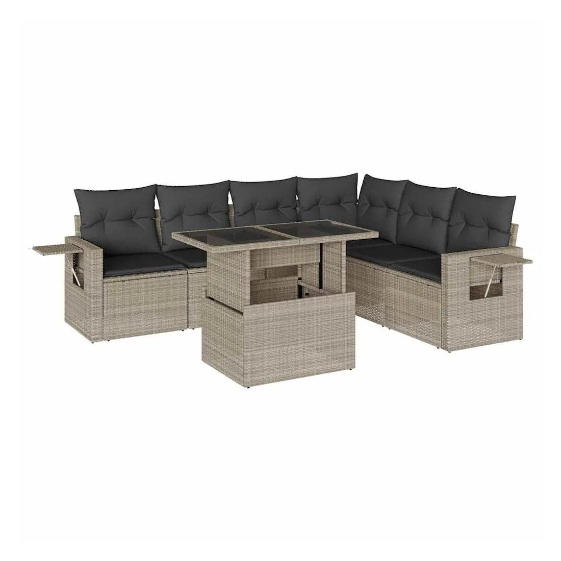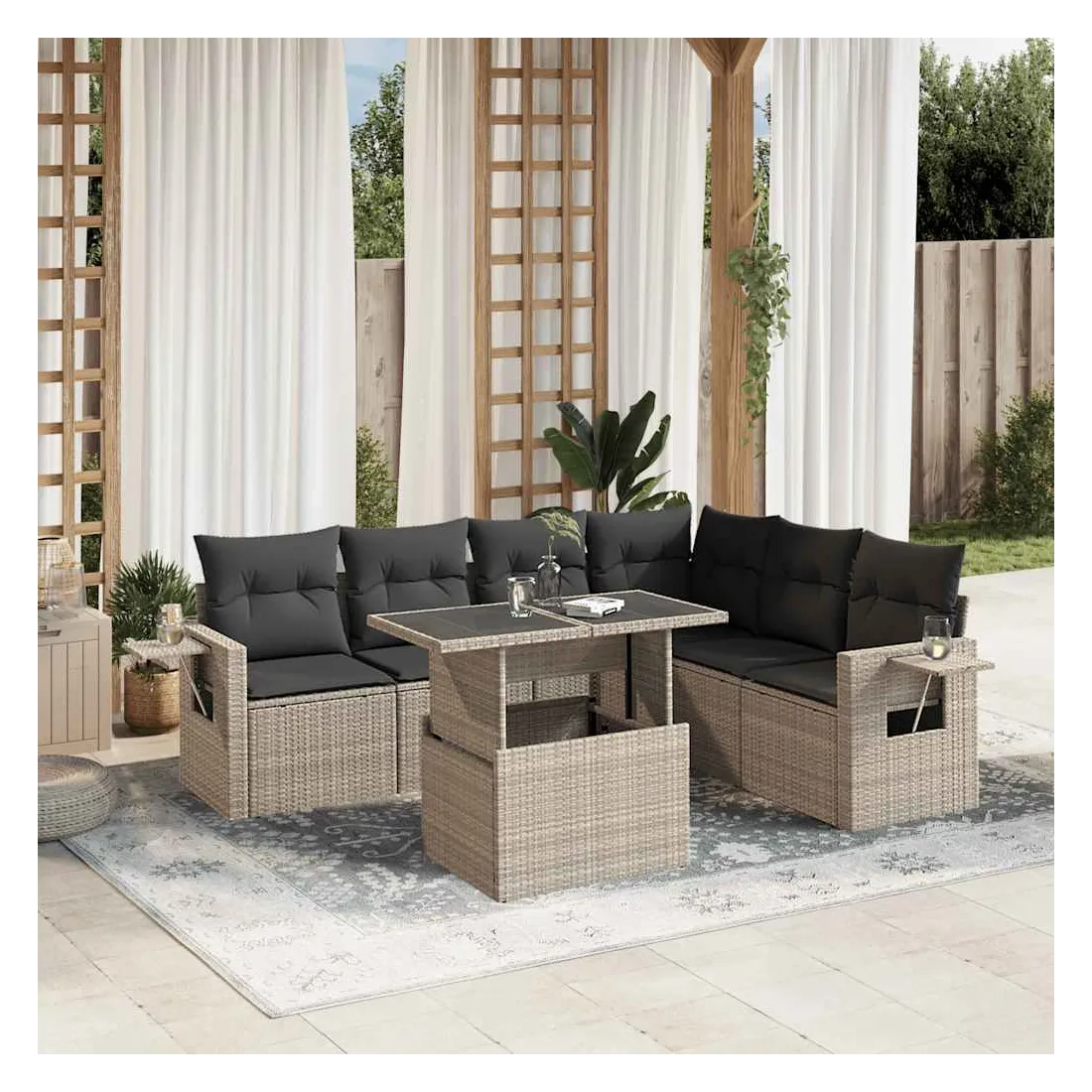 Salon de jardin avec coussins 7 pcs gris clair résine tressée