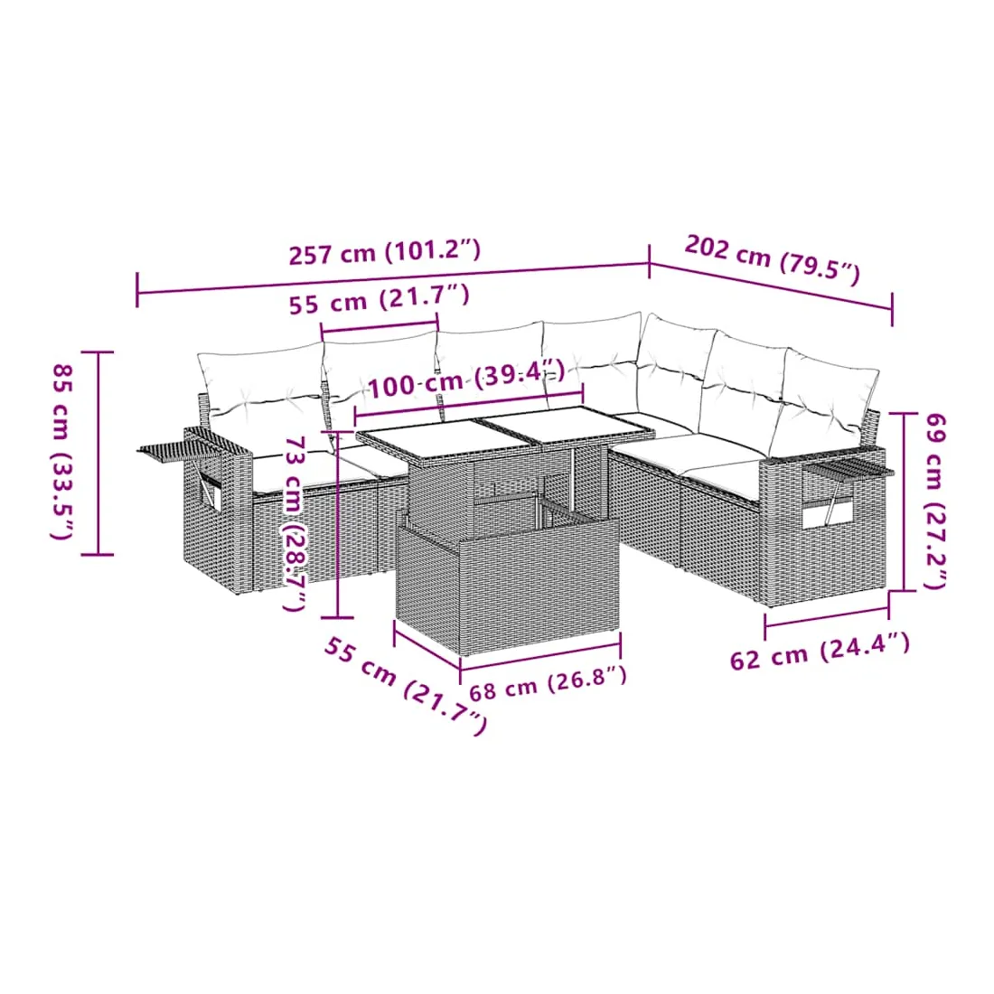 Cet ensemble de canapés de jardin est le complément parfait de votre arrière-cour, terrasse ou patio, offrant un espace confortable et accueillant pour discuter avec la famille et les amis ou simplement se détendre et profiter de l'extérieur. Matériau durable : la résine tressée, également connue sous le nom de poly rotin, est un matériau synthétique solide et nécessitant peu d'entretien qui ressemble au rotin naturel. Elle est légère, facile à nettoyer et couramment utilisée pour les meubles d'extérieur en raison de sa durabilité et de ses propriétés de résistance aux intempéries.Dessus de table réglable : le dessus de table peut être soulevé pour rendre la table plus haute, ce qui transforme la table d'extérieur d'une table basse à une table de salle à manger. Elle est parfaite pour recevoir des invités ou prendre des repas à l'extérieur.Table d'appoint pratique : ce mobilier d'extérieur comprend des tables d'appoint pliables avec un ressort à gaz sur les accoudoirs, offrant des endroits pratiques pour garder vos essentiels à portée de main. Expérience d'assise confortable : ce mobilier d'extérieur, doté de coussins épais, offre une expérience d'assise confortable.Conception modulaire : cet ensemble de meubles d'extérieur a une conception modulaire, ce qui le rend complètement flexible et facile à déplacer, afin que vous puissiez créer un agencement de meubles d'extérieur personnalisé. Bon à savoir :Pour que vos meubles d'extérieur restent beaux, nous vous recommandons de les protéger avec une housse imperméable.