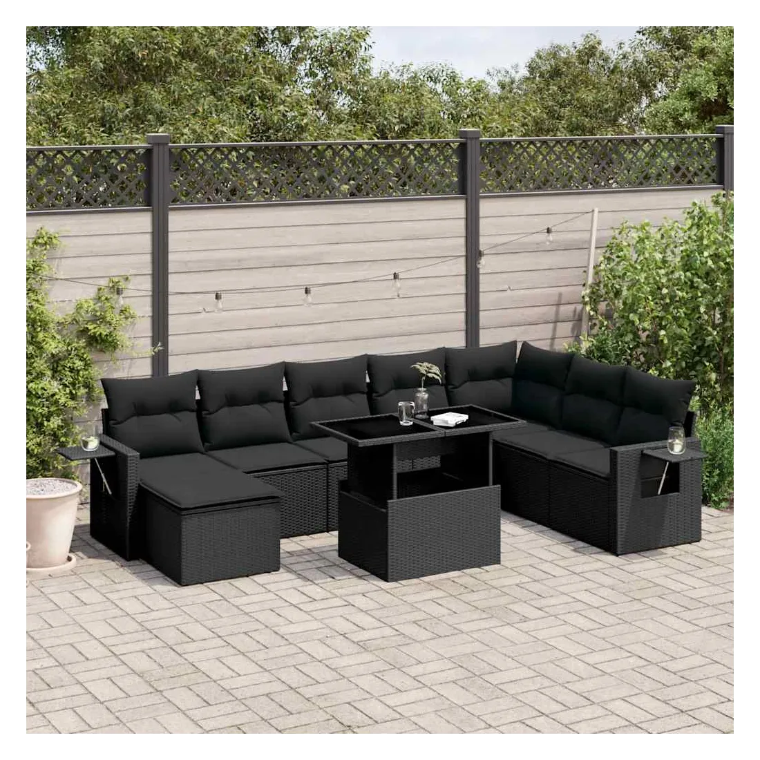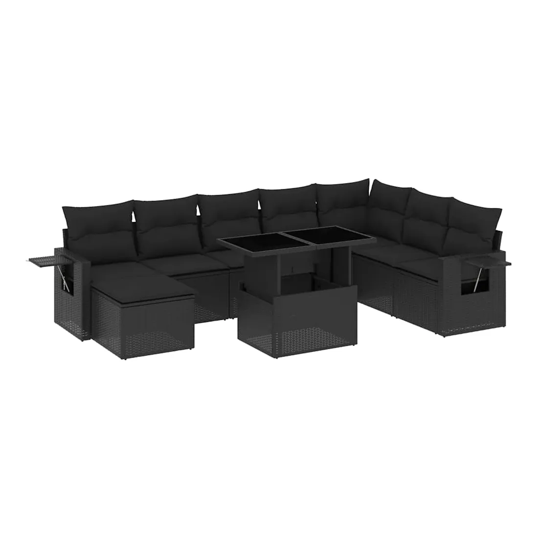 Salon de jardin 8 pcs avec coussins noir résine tressée