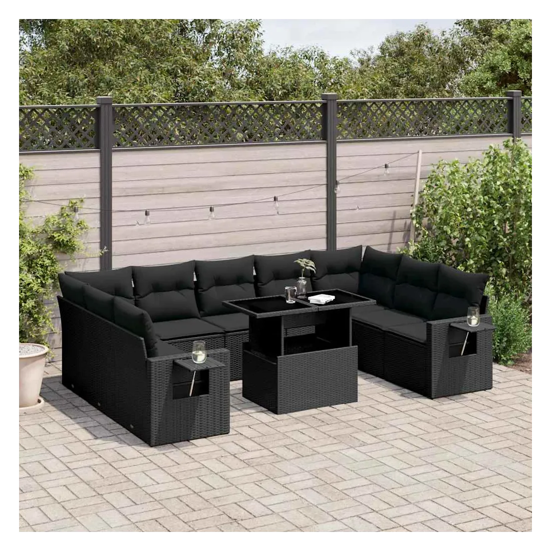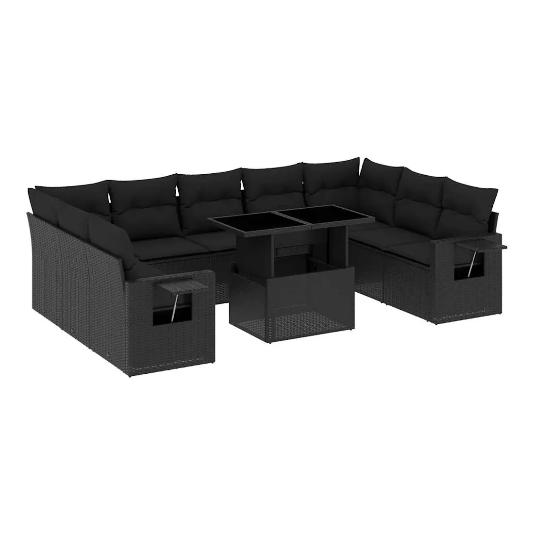 Salon de jardin 10 pcs avec coussins noir résine tressée