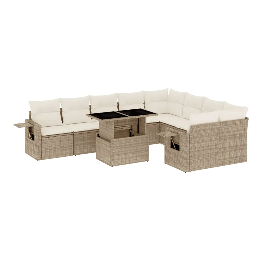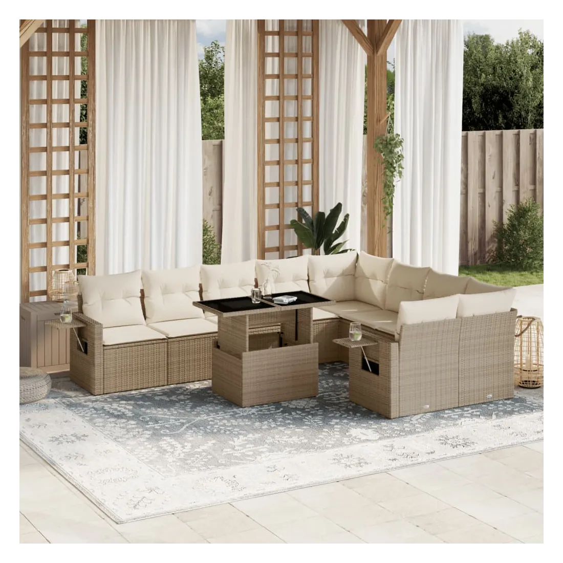 Cet ensemble de canapés de jardin est le complément parfait de votre arrière-cour, terrasse ou patio, offrant un espace confortable et accueillant pour discuter avec la famille et les amis ou simplement se détendre et profiter de l'extérieur. Matériau durable : la résine tressée, également connue sous le nom de poly rotin, est un matériau synthétique solide et nécessitant peu d'entretien qui ressemble au rotin naturel. Il est léger, facile à nettoyer et couramment utilisé pour les meubles d'extérieur en raison de sa durabilité et de ses propriétés de résistance aux intempéries.Dessus de table réglable : le dessus de table peut être soulevé pour rendre la table plus haute, ce qui transforme la table d'extérieur d'une table basse à une table de salle à manger. Elle est parfaite pour recevoir des invités ou prendre des repas à l'extérieur.Table d'appoint pratique : ce mobilier d'extérieur comprend des tables d'appoint pliables avec un ressort à gaz sur les accoudoirs, offrant des endroits pratiques pour garder vos essentiels à portée de main. Expérience d'assise confortable : ce mobilier d'extérieur, doté de coussins épais, offre une expérience d'assise confortable.Conception modulaire : cet ensemble de meubles d'extérieur a une conception modulaire, ce qui le rend complètement flexible et facile à déplacer, afin que vous puissiez créer un agencement de meubles d'extérieur personnalisé. Bon à savoir :Pour que vos meubles d'extérieur restent beaux, nous vous recommandons de les protéger avec une housse imperméable.