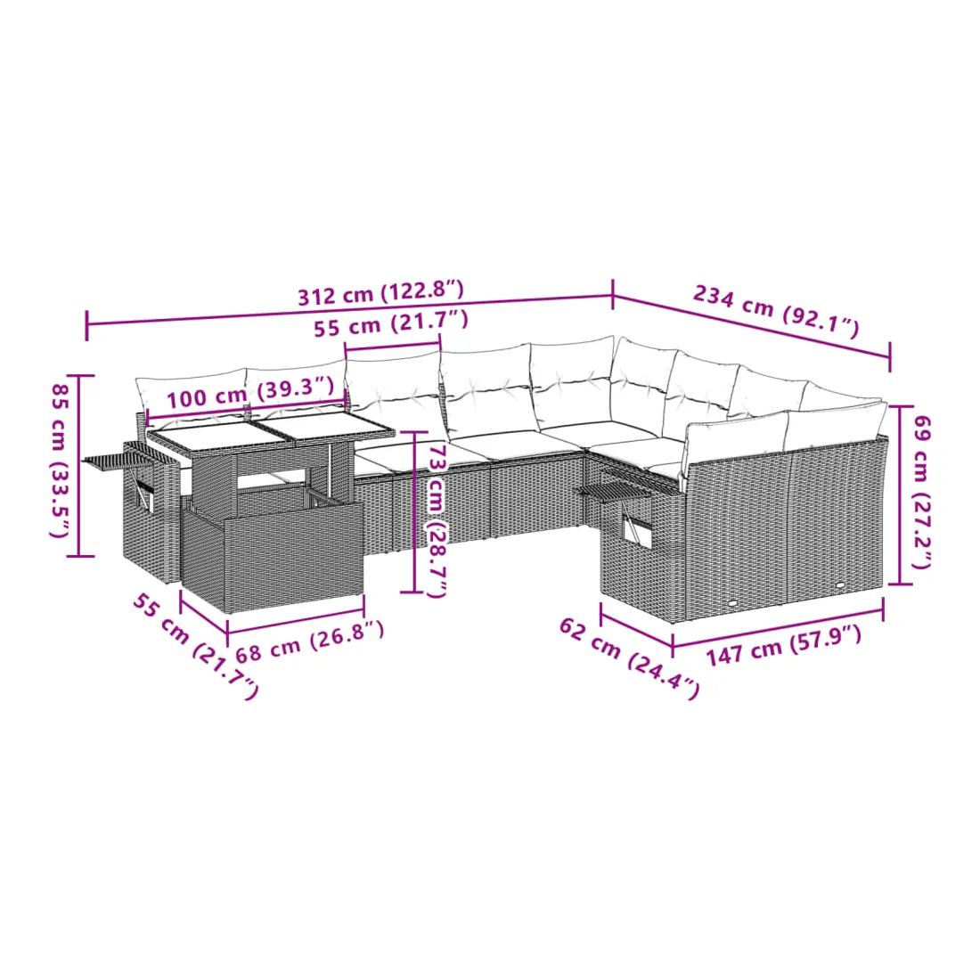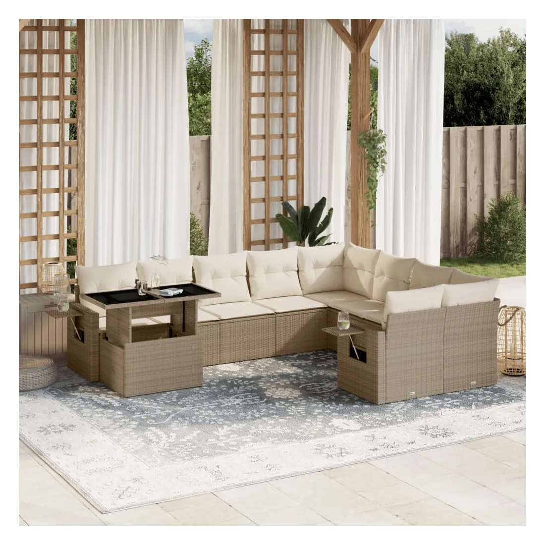 Salon de jardin avec coussins 10 pcs beige résine tressée