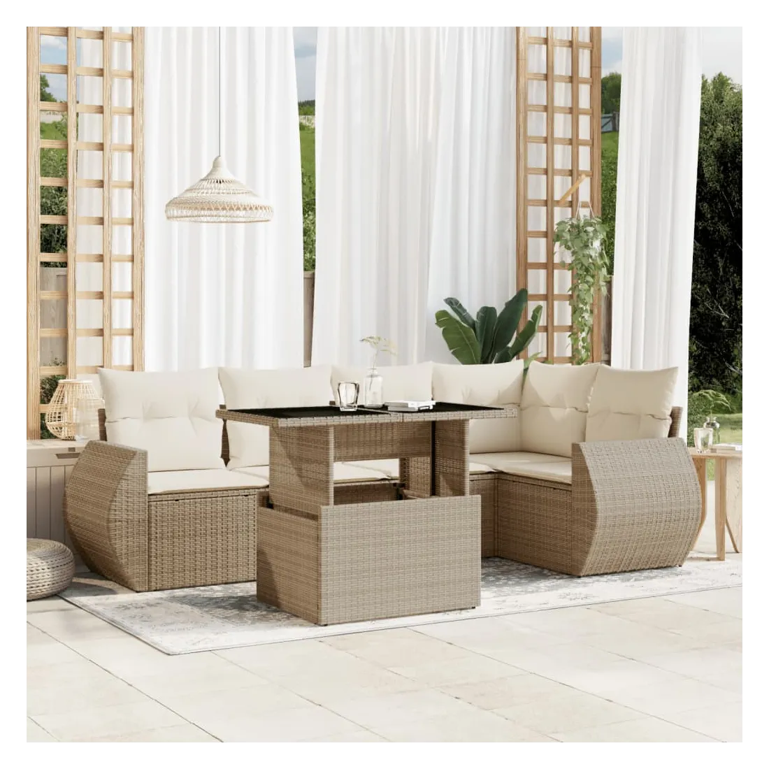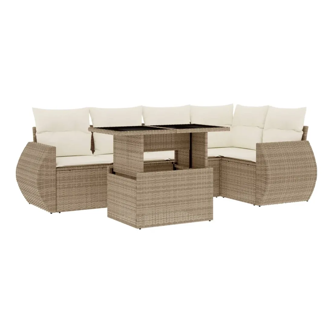 Salon de jardin avec coussins 6 pcs beige résine tressée