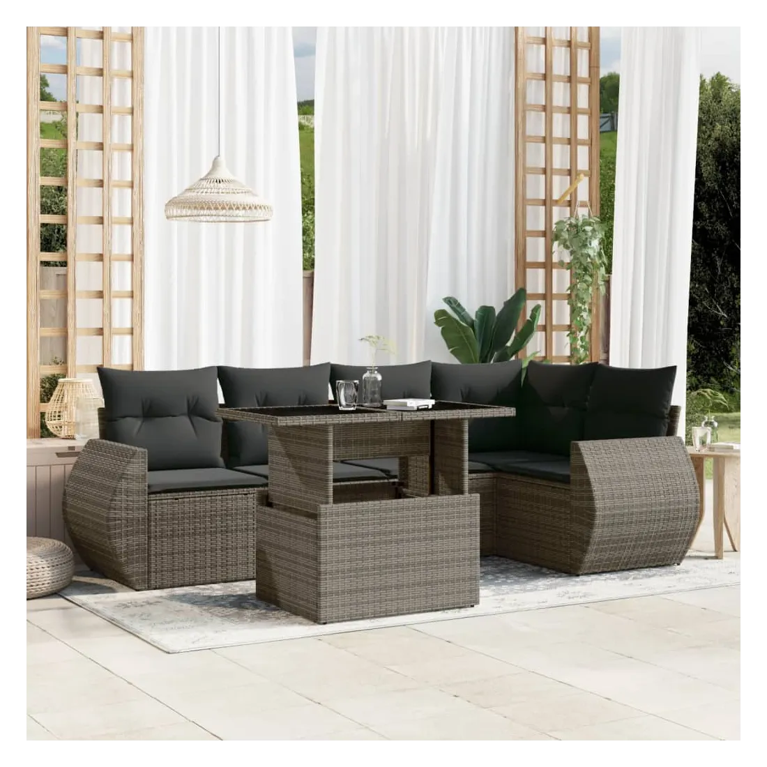 Cet ensemble de canapés de jardin est le complément parfait de votre arrière-cour, terrasse ou patio, offrant un espace confortable et accueillant pour discuter avec la famille et les amis ou simplement se détendre et profiter de l'extérieur. Matériau durable : la résine tressée, également connue sous le nom de poly rotin, est un matériau synthétique solide et nécessitant peu d'entretien qui ressemble au rotin naturel. Il est léger, facile à nettoyer et couramment utilisé pour les meubles d'extérieur en raison de sa durabilité et de ses propriétés de résistance aux intempéries.Dessus de table réglable : le dessus de table peut être soulevé pour rendre la table plus haute, ce qui transforme la table d'extérieur d'une table basse à une table de salle à manger. Elle est parfaite pour recevoir des invités ou prendre des repas à l'extérieur.Expérience d'assise confortable : ce mobilier d'extérieur, doté de coussins épais, offre une expérience d'assise confortable.Housse amovible et lavable : ces coussins de siège sont dotés de housses amovibles pour un lavage et un entretien faciles.Conception modulaire : cet ensemble de meubles d'extérieur a une conception modulaire, ce qui le rend complètement flexible et facile à déplacer, afin que vous puissiez créer un agencement de meubles d'extérieur personnalisé. Bon à savoir :Pour que vos meubles d'extérieur restent beaux, nous vous recommandons de les protéger avec une housse imperméable.