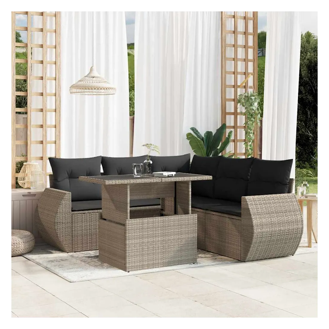Cet ensemble de canapés de jardin est le complément parfait de votre arrière-cour, terrasse ou patio, offrant un espace confortable et accueillant pour discuter avec la famille et les amis ou simplement se détendre et profiter de l'extérieur. Matériau durable : la résine tressée, également connue sous le nom de poly rotin, est un matériau synthétique solide et nécessitant peu d'entretien qui ressemble au rotin naturel. Elle est légère, facile à nettoyer et couramment utilisée pour les meubles d'extérieur en raison de sa durabilité et de ses propriétés de résistance aux intempéries.Dessus de table réglable : le dessus de table peut être soulevé pour rendre la table plus haute, ce qui transforme la table d'extérieur d'une table basse à une table de salle à manger. Elle est parfaite pour recevoir des invités ou prendre des repas à l'extérieur.Expérience d'assise confortable : ce mobilier d'extérieur, doté de coussins épais, offre une expérience d'assise confortable.Housse amovible et lavable : ces coussins de siège sont dotés de housses amovibles pour un lavage et un entretien faciles.Conception modulaire : cet ensemble de meubles d'extérieur a une conception modulaire, ce qui le rend complètement flexible et facile à déplacer, afin que vous puissiez créer un agencement de meubles d'extérieur personnalisé. Bon à savoir :Pour que vos meubles d'extérieur restent beaux, nous vous recommandons de les protéger avec une housse imperméable.