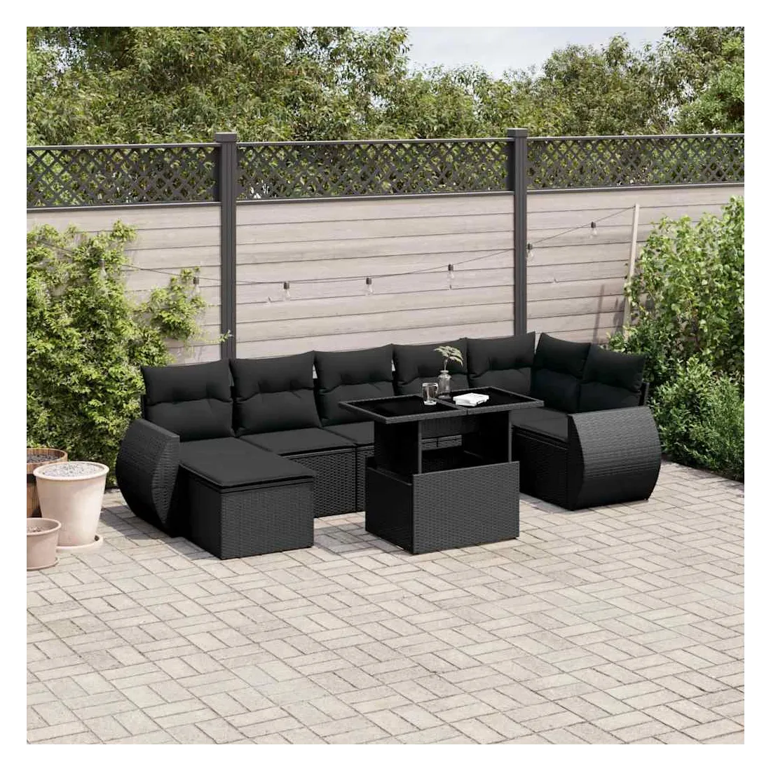 Cet ensemble de canapés de jardin est le complément parfait de votre arrière-cour, terrasse ou patio, offrant un espace confortable et accueillant pour discuter avec la famille et les amis ou simplement se détendre et profiter de l'extérieur. Matériau durable : la résine tressée, également connue sous le nom de poly rotin, est un matériau synthétique solide et nécessitant peu d'entretien qui ressemble au rotin naturel. Il est léger, facile à nettoyer et couramment utilisé pour les meubles d'extérieur en raison de sa durabilité et de ses propriétés de résistance aux intempéries.Dessus de table réglable : le dessus de table peut être soulevé pour rendre la table plus haute, ce qui transforme la table d'extérieur d'une table basse à une table de salle à manger. Elle est parfaite pour recevoir des invités ou prendre des repas à l'extérieur.Expérience d'assise confortable : ce mobilier d'extérieur, doté de coussins épais, offre une expérience d'assise confortable.Housse amovible et lavable : ces coussins de siège sont dotés de housses amovibles pour un lavage et un entretien faciles.Conception modulaire : cet ensemble de meubles d'extérieur a une conception modulaire, ce qui le rend complètement flexible et facile à déplacer, afin que vous puissiez créer un agencement de meubles d'extérieur personnalisé. Bon à savoir :Pour que vos meubles d'extérieur restent beaux, nous vous recommandons de les protéger avec une housse imperméable.