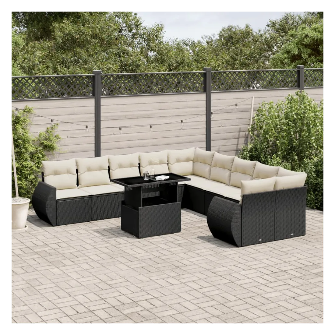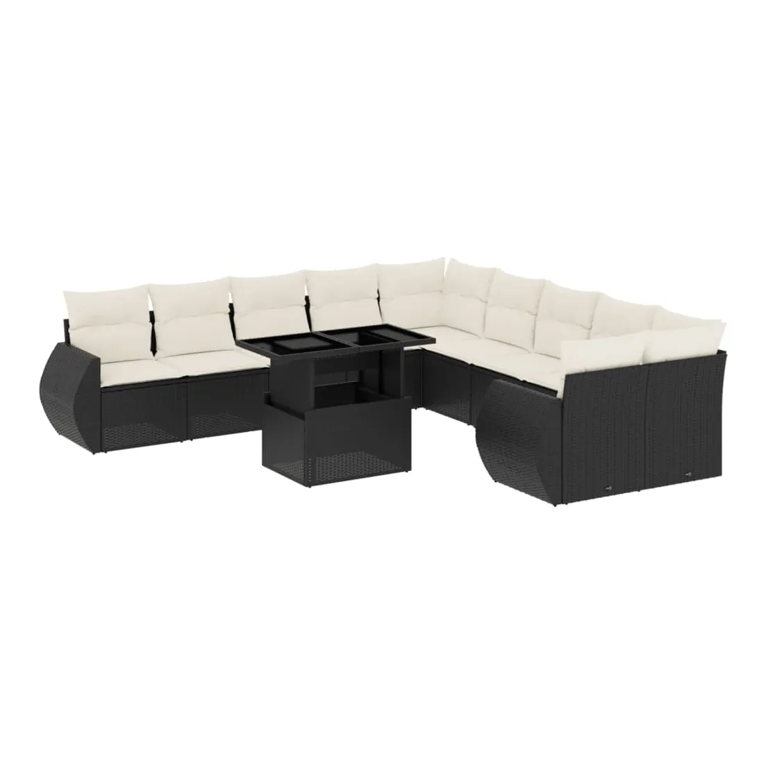 Salon de jardin 11 pcs avec coussins noir résine tressée