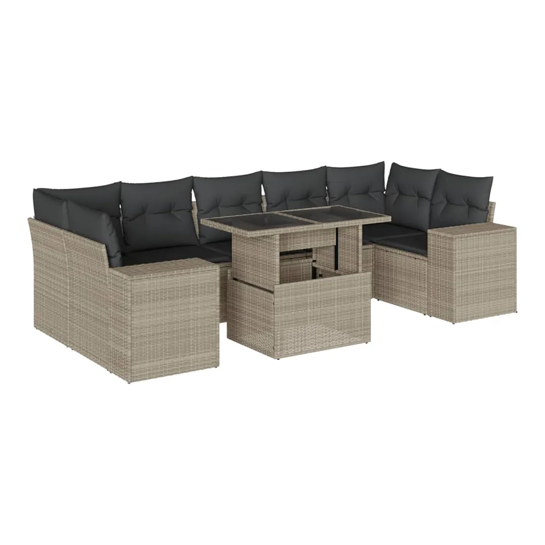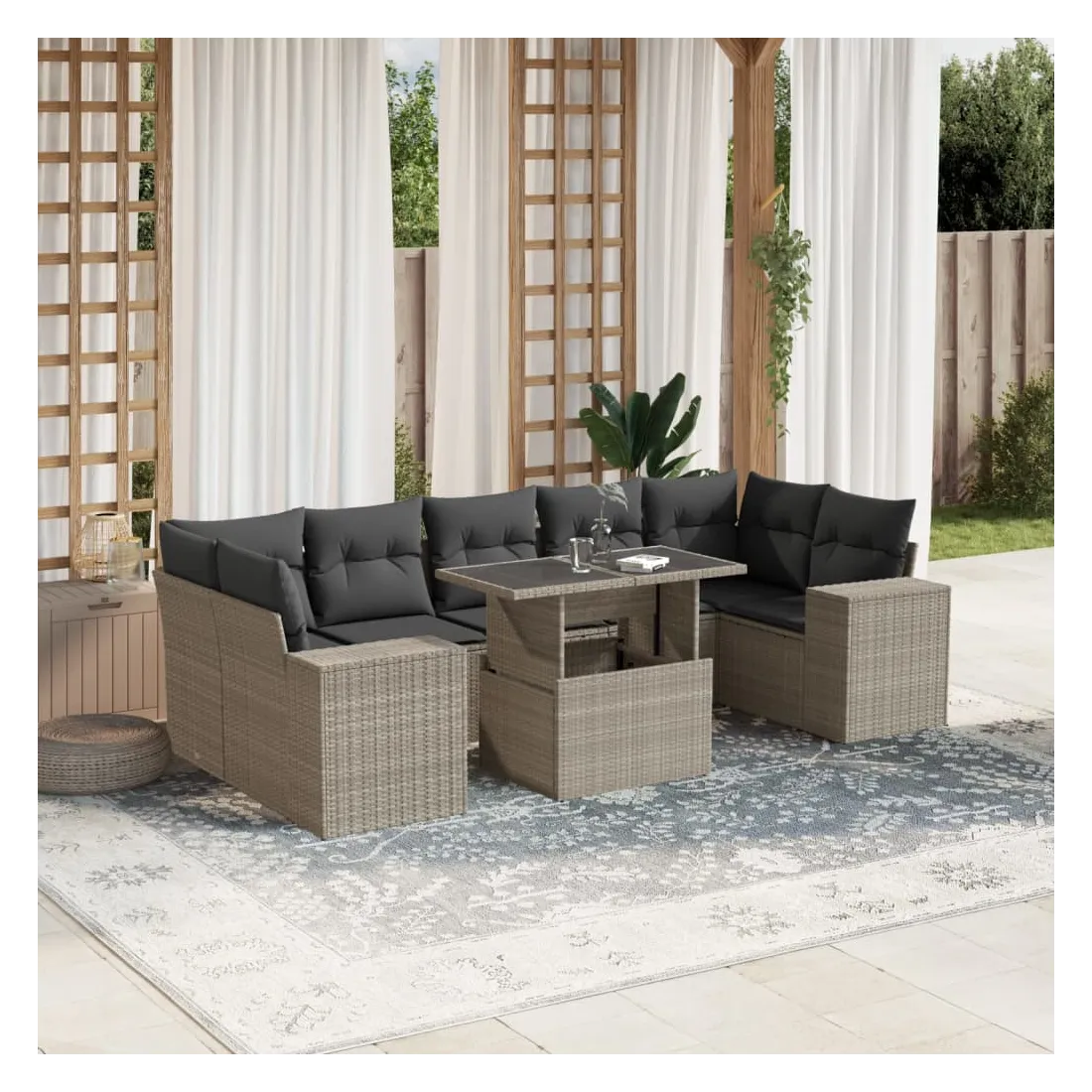Cet ensemble de canapés de jardin est le complément parfait de votre arrière-cour, terrasse ou patio, offrant un espace confortable et accueillant pour discuter avec la famille et les amis ou simplement se détendre et profiter de l'extérieur. Matériau durable : la résine tressée, également connue sous le nom de poly rotin, est un matériau synthétique solide et nécessitant peu d'entretien qui ressemble au rotin naturel. Elle est légère, facile à nettoyer et couramment utilisée pour les meubles d'extérieur en raison de sa durabilité et de ses propriétés de résistance aux intempéries.Dessus de table réglable : le dessus de table peut être soulevé pour rendre la table plus haute, ce qui transforme la table d'extérieur d'une table basse à une table de salle à manger. Elle est parfaite pour recevoir des invités ou prendre des repas à l'extérieur.Expérience d'assise confortable : ce mobilier d'extérieur, doté de coussins épais, offre une expérience d'assise confortable.Housse amovible et lavable : ces coussins de siège sont dotés de housses amovibles pour un lavage et un entretien faciles.Conception modulaire : cet ensemble de meubles d'extérieur a une conception modulaire, ce qui le rend complètement flexible et facile à déplacer, afin que vous puissiez créer un agencement de meubles d'extérieur personnalisé. Bon à savoir :Pour que vos meubles d'extérieur restent beaux, nous vous recommandons de les protéger avec une housse imperméable.