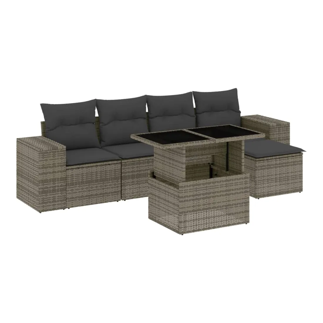 Cet ensemble de canapés de jardin est le complément parfait de votre arrière-cour, terrasse ou patio, offrant un espace confortable et accueillant pour discuter avec la famille et les amis ou simplement se détendre et profiter de l'extérieur. Matériau durable : la résine tressée, également connue sous le nom de poly rotin, est un matériau synthétique solide et nécessitant peu d'entretien qui ressemble au rotin naturel. Il est léger, facile à nettoyer et couramment utilisé pour les meubles d'extérieur en raison de sa durabilité et de ses propriétés de résistance aux intempéries.Dessus de table réglable : le dessus de table peut être soulevé pour rendre la table plus haute, ce qui transforme la table d'extérieur d'une table basse à une table de salle à manger. Elle est parfaite pour recevoir des invités ou prendre des repas à l'extérieur.Expérience d'assise confortable : ce mobilier d'extérieur, doté de coussins épais, offre une expérience d'assise confortable.Housse amovible et lavable : ces coussins de siège sont dotés de housses amovibles pour un lavage et un entretien faciles.Conception modulaire : cet ensemble de meubles d'extérieur a une conception modulaire, ce qui le rend complètement flexible et facile à déplacer, afin que vous puissiez créer un agencement de meubles d'extérieur personnalisé. Bon à savoir :Pour que vos meubles d'extérieur restent beaux, nous vous recommandons de les protéger avec une housse imperméable.