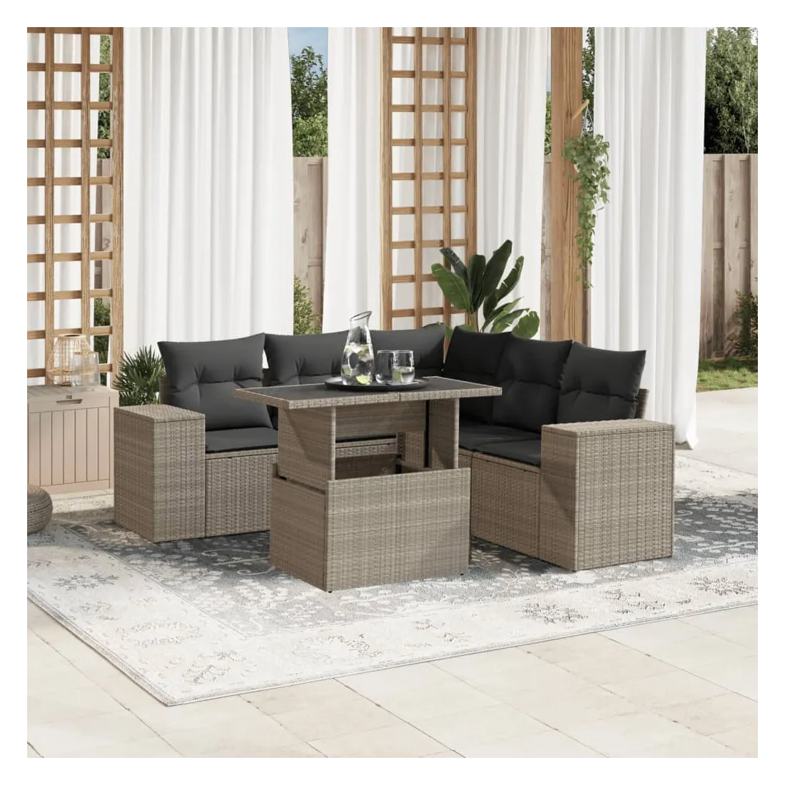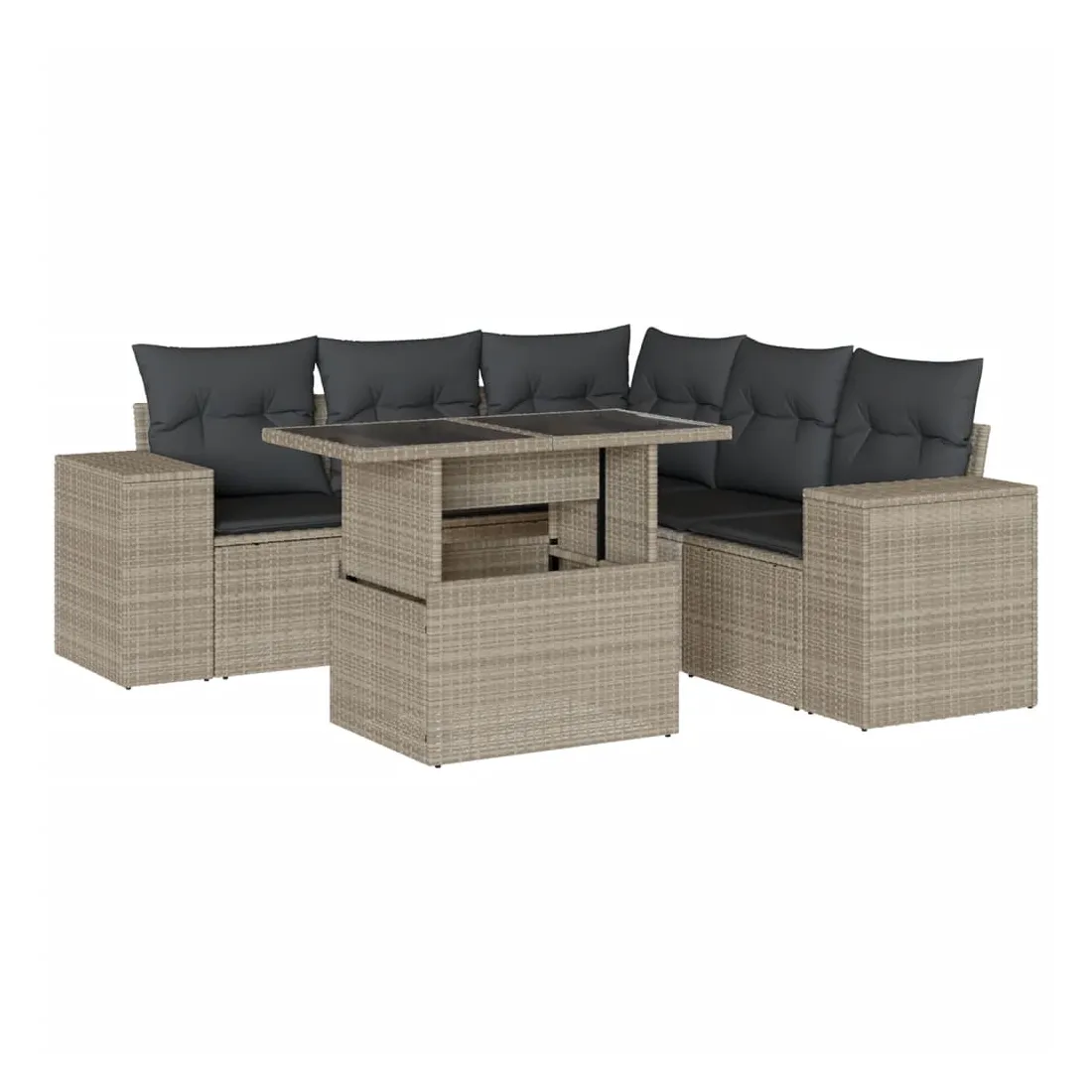 Salon de jardin 6 pcs avec coussins gris clair résine tressée