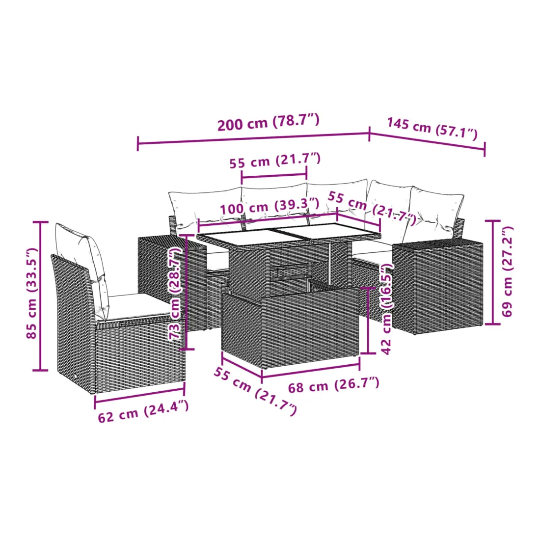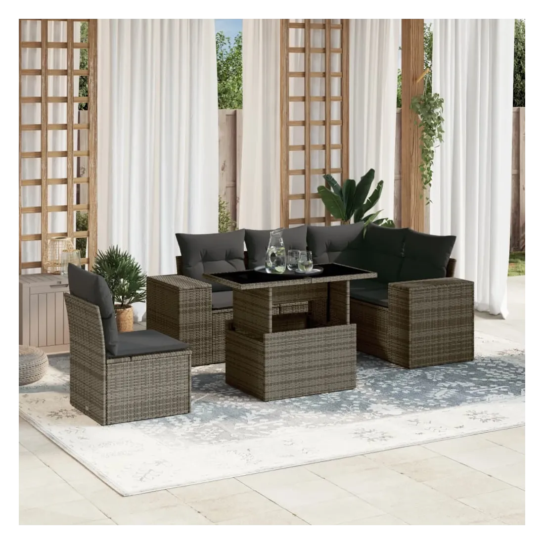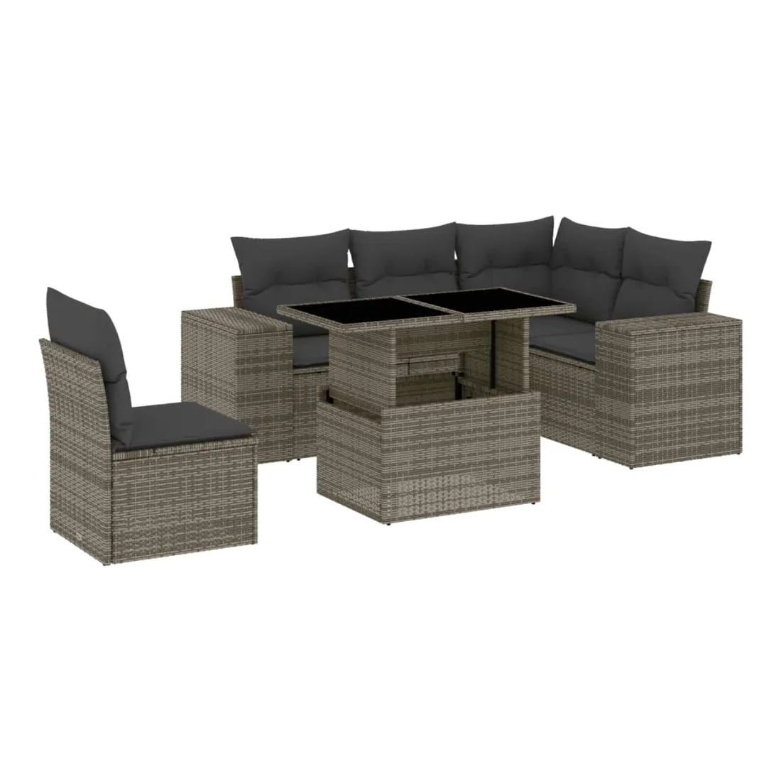Salon de jardin 6 pcs avec coussins gris résine tressée