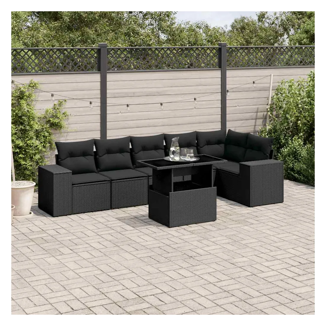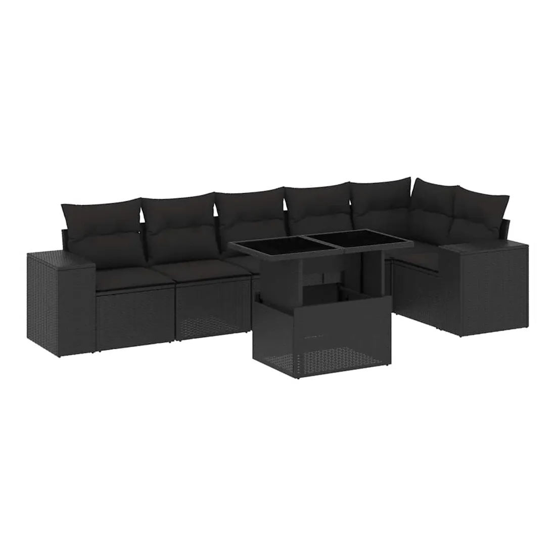 Salon de jardin 7 pcs avec coussins noir résine tressée