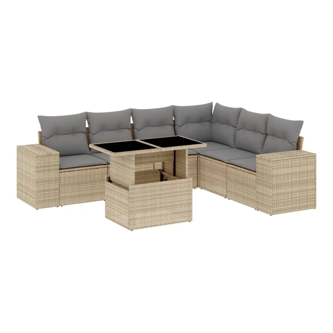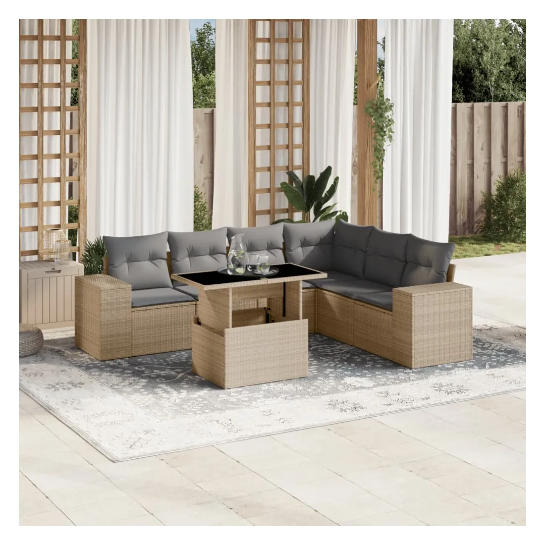 Cet ensemble de canapés de jardin est le complément parfait de votre arrière-cour, terrasse ou patio, offrant un espace confortable et accueillant pour discuter avec la famille et les amis ou simplement se détendre et profiter de l'extérieur. Matériau durable : la résine tressée, également connue sous le nom de poly rotin, est un matériau synthétique solide et nécessitant peu d'entretien qui ressemble au rotin naturel. Il est léger, facile à nettoyer et couramment utilisé pour les meubles d'extérieur en raison de sa durabilité et de ses propriétés de résistance aux intempéries.Dessus de table réglable : le dessus de table peut être soulevé pour rendre la table plus haute, ce qui transforme la table d'extérieur d'une table basse à une table de salle à manger. Elle est parfaite pour recevoir des invités ou prendre des repas à l'extérieur.Expérience d'assise confortable : ce mobilier d'extérieur, doté de coussins épais, offre une expérience d'assise confortable.Housse amovible et lavable : ces coussins de siège sont dotés de housses amovibles pour un lavage et un entretien faciles.Conception modulaire : cet ensemble de meubles d'extérieur a une conception modulaire, ce qui le rend complètement flexible et facile à déplacer, afin que vous puissiez créer un agencement de meubles d'extérieur personnalisé. Bon à savoir :Pour que vos meubles d'extérieur restent beaux, nous vous recommandons de les protéger avec une housse imperméable.