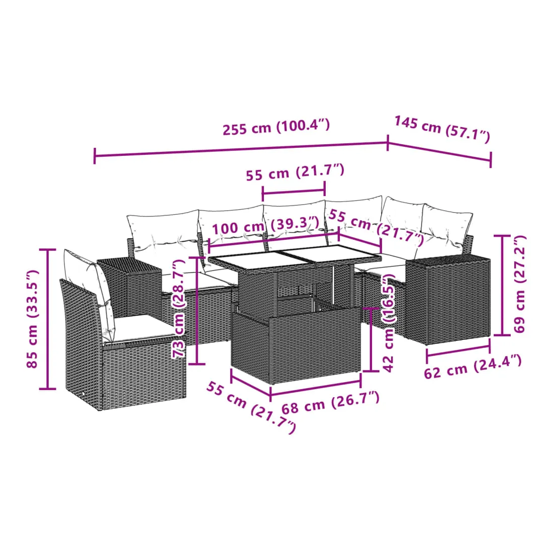 Cet ensemble de canapés de jardin est le complément parfait de votre arrière-cour, terrasse ou patio, offrant un espace confortable et accueillant pour discuter avec la famille et les amis ou simplement se détendre et profiter de l'extérieur. Matériau durable : la résine tressée, également connue sous le nom de poly rotin, est un matériau synthétique solide et nécessitant peu d'entretien qui ressemble au rotin naturel. Il est léger, facile à nettoyer et couramment utilisé pour les meubles d'extérieur en raison de sa durabilité et de ses propriétés de résistance aux intempéries.Dessus de table réglable : le dessus de table peut être soulevé pour rendre la table plus haute, ce qui transforme la table d'extérieur d'une table basse à une table de salle à manger. Elle est parfaite pour recevoir des invités ou prendre des repas à l'extérieur.Expérience d'assise confortable : ce mobilier d'extérieur, doté de coussins épais, offre une expérience d'assise confortable.Housse amovible et lavable : ces coussins de siège sont dotés de housses amovibles pour un lavage et un entretien faciles.Conception modulaire : cet ensemble de meubles d'extérieur a une conception modulaire, ce qui le rend complètement flexible et facile à déplacer, afin que vous puissiez créer un agencement de meubles d'extérieur personnalisé. Bon à savoir :Pour que vos meubles d'extérieur restent beaux, nous vous recommandons de les protéger avec une housse imperméable.