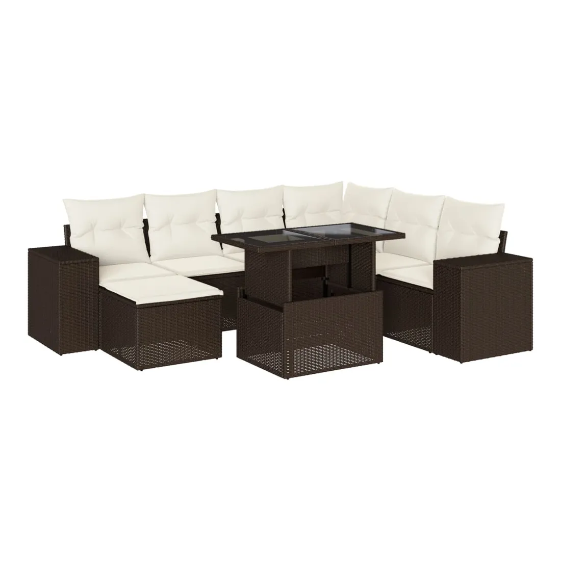 Salon de jardin 8 pcs avec coussins marron résine tressée