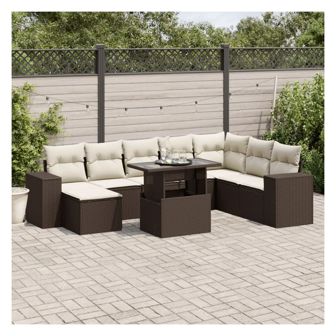 Cet ensemble de canapés de jardin est le complément parfait de votre arrière-cour, terrasse ou patio, offrant un espace confortable et accueillant pour discuter avec la famille et les amis ou simplement se détendre et profiter de l'extérieur. Matériau durable : la résine tressée, également connue sous le nom de poly rotin, est un matériau synthétique solide et nécessitant peu d'entretien qui ressemble au rotin naturel. Elle est légère, facile à nettoyer et couramment utilisée pour les meubles d'extérieur en raison de sa durabilité et de ses propriétés de résistance aux intempéries.Dessus de table réglable : le dessus de table peut être soulevé pour rendre la table plus haute, ce qui transforme la table d'extérieur d'une table basse à une table de salle à manger. Elle est parfaite pour recevoir des invités ou prendre des repas à l'extérieur.Expérience d'assise confortable : ce mobilier d'extérieur, doté de coussins épais, offre une expérience d'assise confortable.Housse amovible et lavable : ces coussins de siège sont dotés de housses amovibles pour un lavage et un entretien faciles.Conception modulaire : cet ensemble de meubles d'extérieur a une conception modulaire, ce qui le rend complètement flexible et facile à déplacer, afin que vous puissiez créer un agencement de meubles d'extérieur personnalisé. Bon à savoir :Pour que vos meubles d'extérieur restent beaux, nous vous recommandons de les protéger avec une housse imperméable.