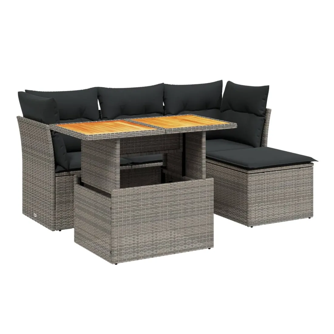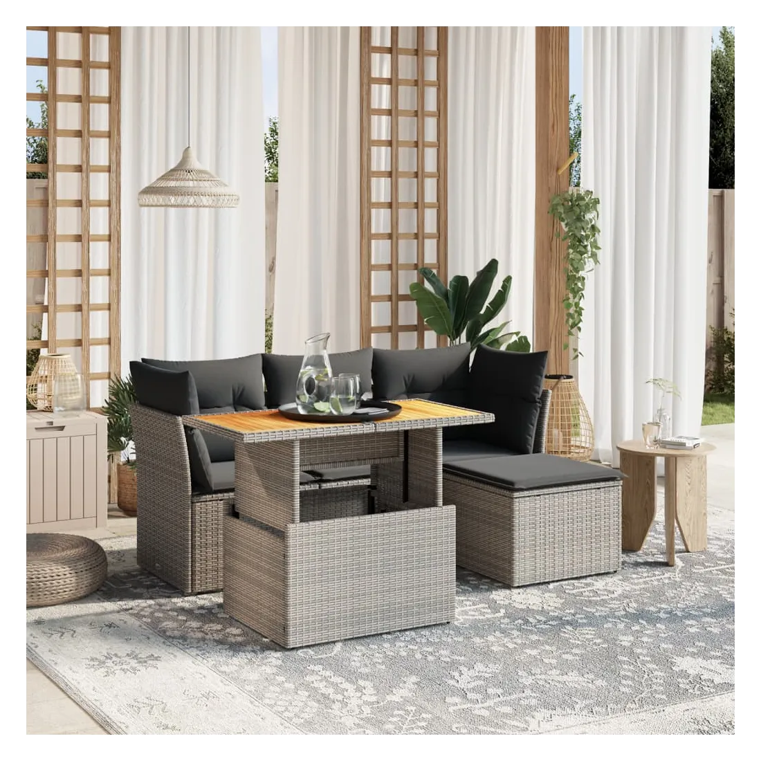 Cet ensemble de canapés de jardin est le complément parfait de votre arrière-cour, terrasse ou patio, offrant un espace confortable et accueillant pour discuter avec la famille et les amis ou simplement se détendre et profiter de l'extérieur. Matériau durable : la résine tressée, également connue sous le nom de poly rotin, est un matériau synthétique solide et nécessitant peu d'entretien qui ressemble au rotin naturel. Il est léger, facile à nettoyer et couramment utilisé pour les meubles d'extérieur en raison de sa durabilité et de ses propriétés de résistance aux intempéries.Dessus de table réglable : le dessus de table peut être soulevé pour rendre la table plus haute, ce qui transforme la table d'extérieur d'une table basse à une table de salle à manger. Elle est parfaite pour recevoir des invités ou prendre des repas à l'extérieur.Expérience d'assise confortable : ce mobilier d'extérieur, doté de coussins épais, offre une expérience d'assise confortable.Housse amovible et lavable : ces coussins de siège sont dotés de housses amovibles pour un lavage et un entretien faciles.Conception modulaire : cet ensemble de meubles d'extérieur a une conception modulaire, ce qui le rend complètement flexible et facile à déplacer, afin que vous puissiez créer un agencement de meubles d'extérieur personnalisé. Bon à savoir :Pour que vos meubles d'extérieur restent beaux, nous vous recommandons de les protéger avec une housse imperméable.