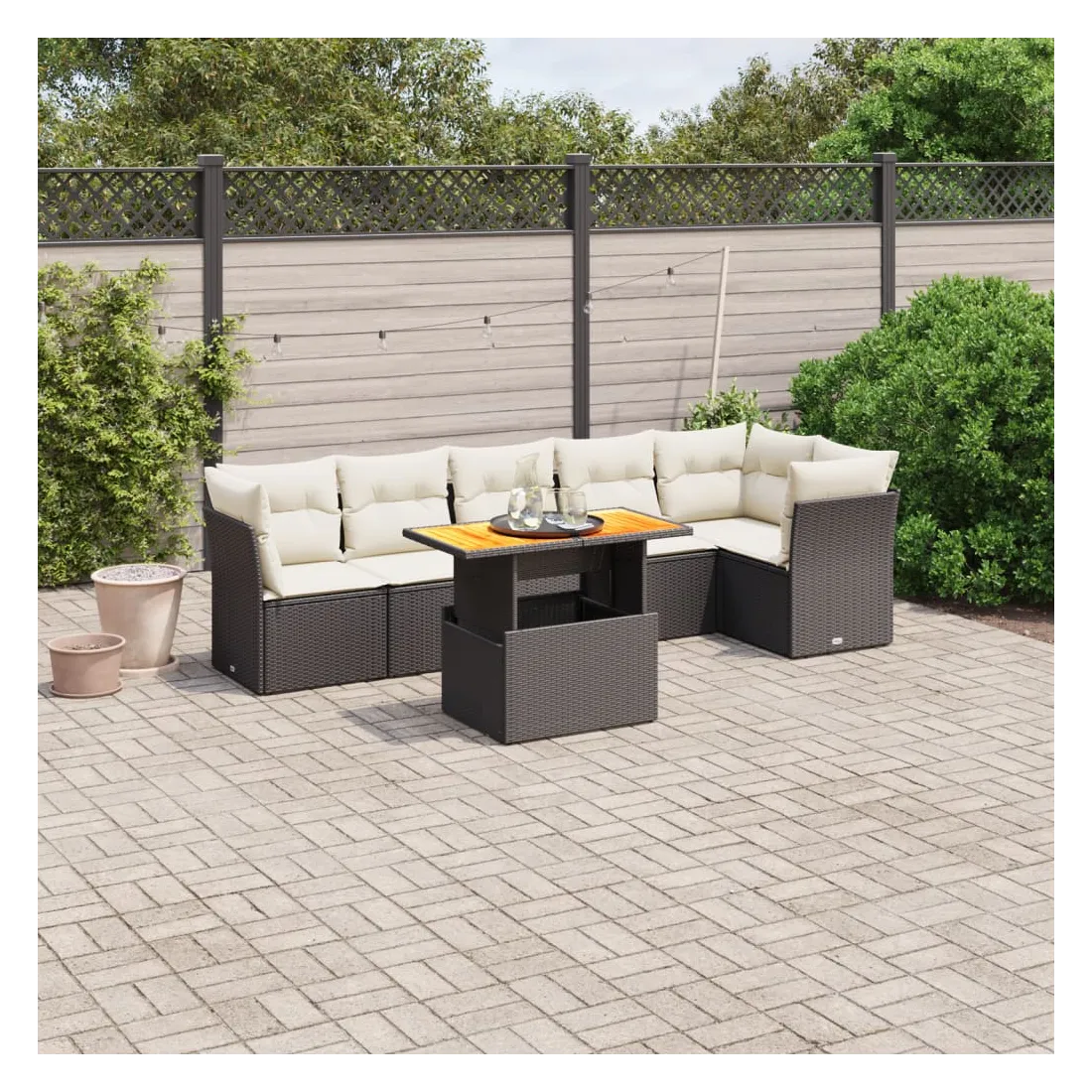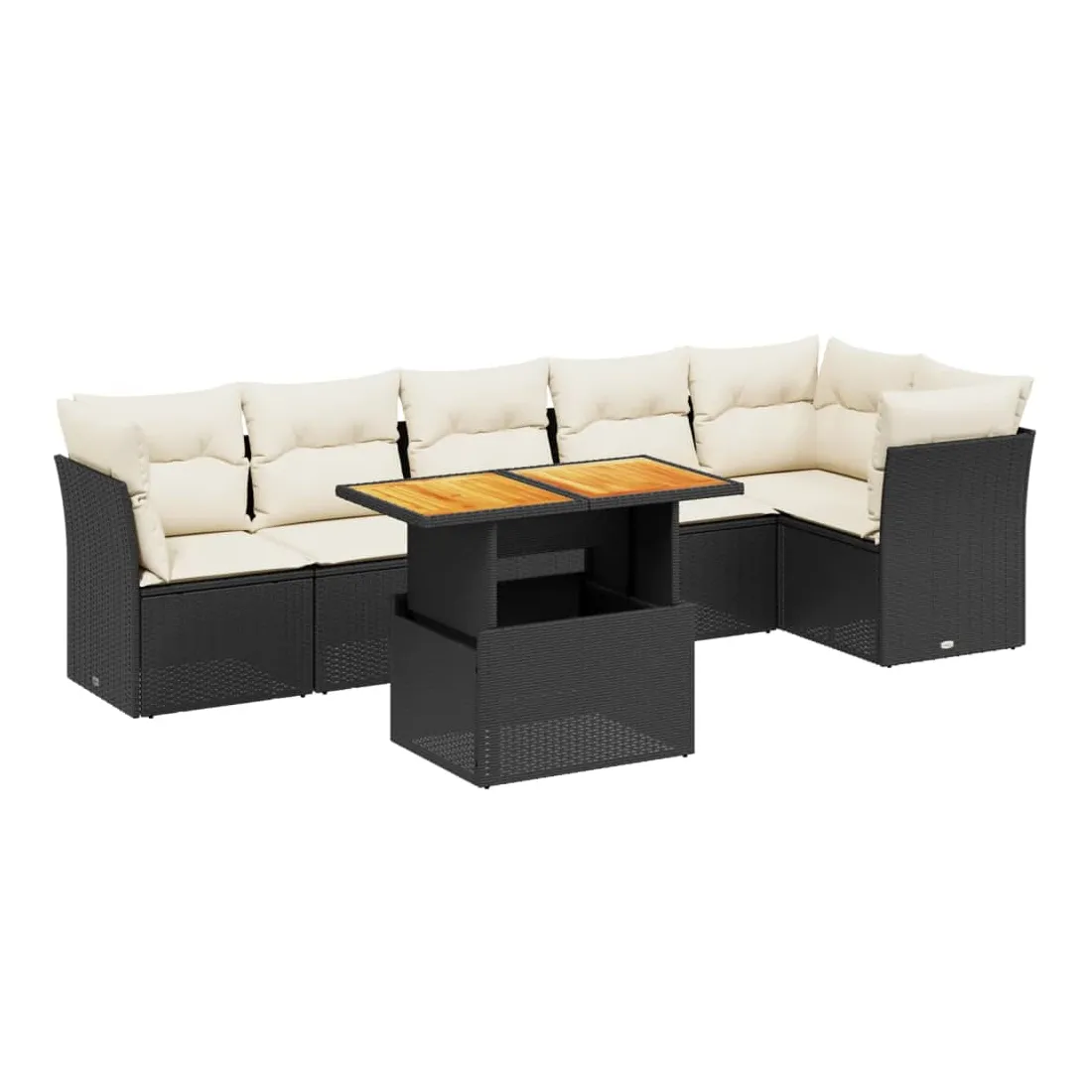 Salon de jardin 7 pcs avec coussins noir résine tressée