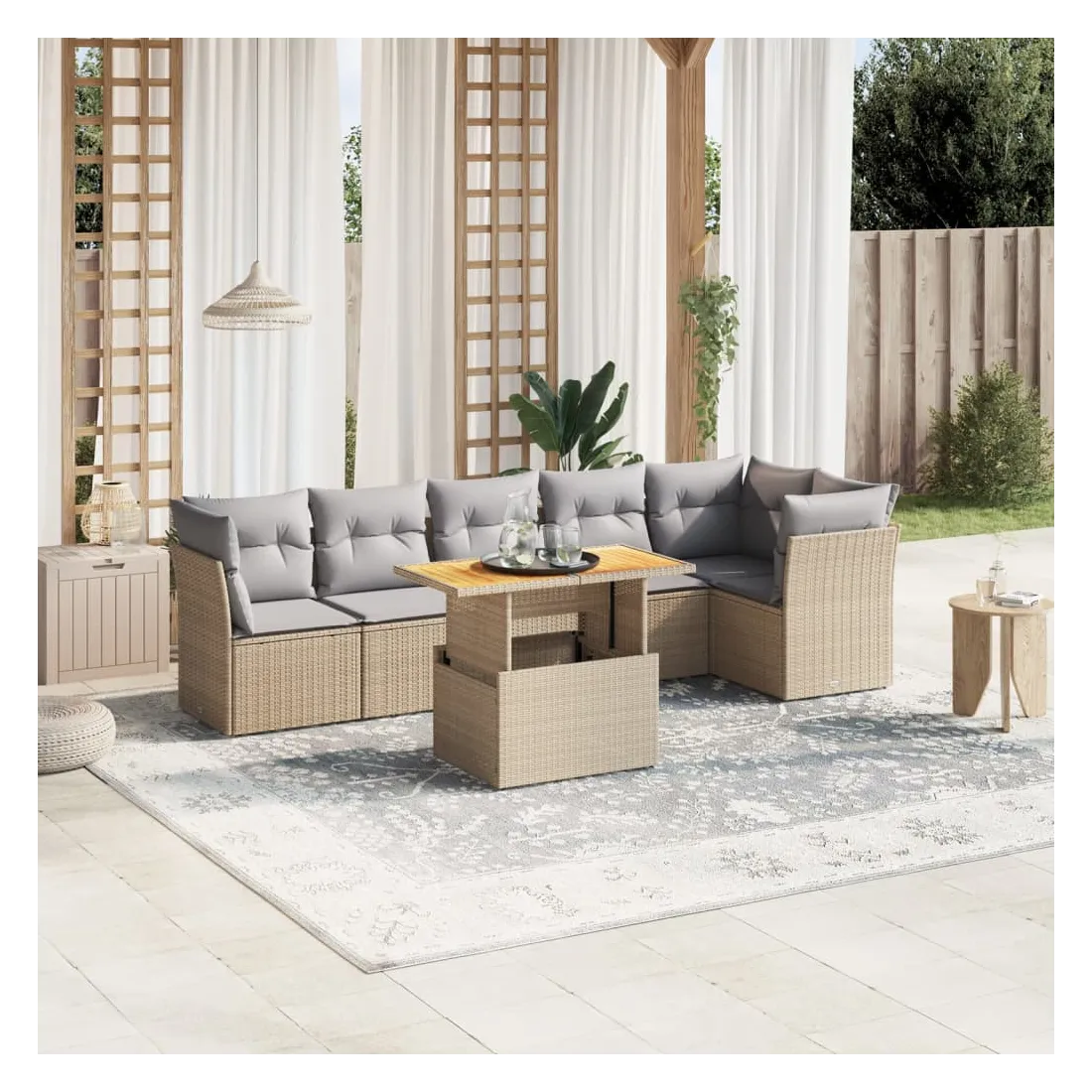 Cet ensemble de canapés de jardin est le complément parfait de votre arrière-cour, terrasse ou patio, offrant un espace confortable et accueillant pour discuter avec la famille et les amis ou simplement se détendre et profiter de l'extérieur. Matériau durable : la résine tressée, également connue sous le nom de poly rotin, est un matériau synthétique solide et nécessitant peu d'entretien qui ressemble au rotin naturel. Il est léger, facile à nettoyer et couramment utilisé pour les meubles d'extérieur en raison de sa durabilité et de ses propriétés de résistance aux intempéries.Dessus de table réglable : le dessus de table peut être soulevé pour rendre la table plus haute, ce qui transforme la table d'extérieur d'une table basse à une table de salle à manger. Elle est parfaite pour recevoir des invités ou prendre des repas à l'extérieur.Expérience d'assise confortable : ce mobilier d'extérieur, doté de coussins épais, offre une expérience d'assise confortable.Housse amovible et lavable : ces coussins de siège sont dotés de housses amovibles pour un lavage et un entretien faciles.Conception modulaire : cet ensemble de meubles d'extérieur a une conception modulaire, ce qui le rend complètement flexible et facile à déplacer, afin que vous puissiez créer un agencement de meubles d'extérieur personnalisé. Bon à savoir :Pour que vos meubles d'extérieur restent beaux, nous vous recommandons de les protéger avec une housse imperméable.