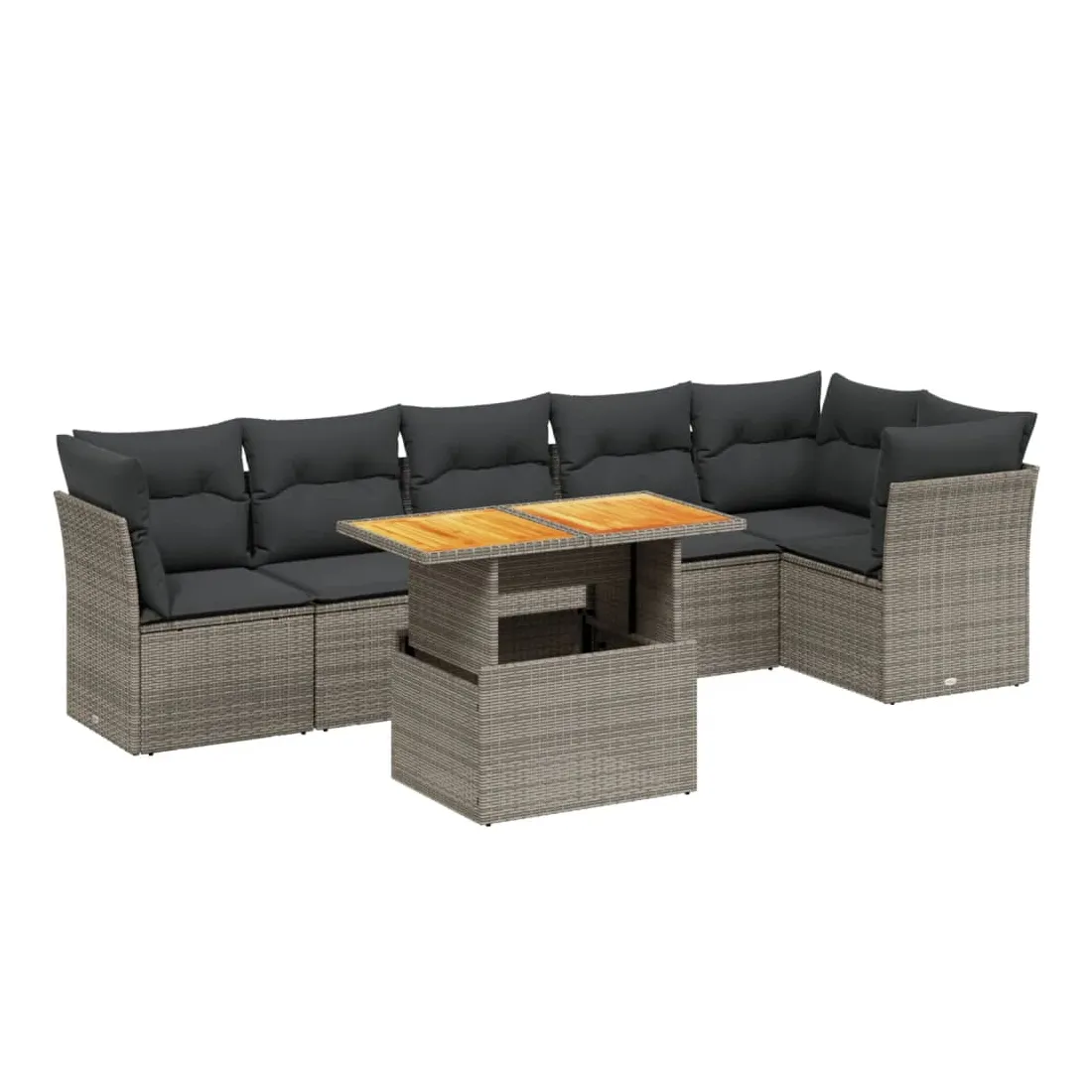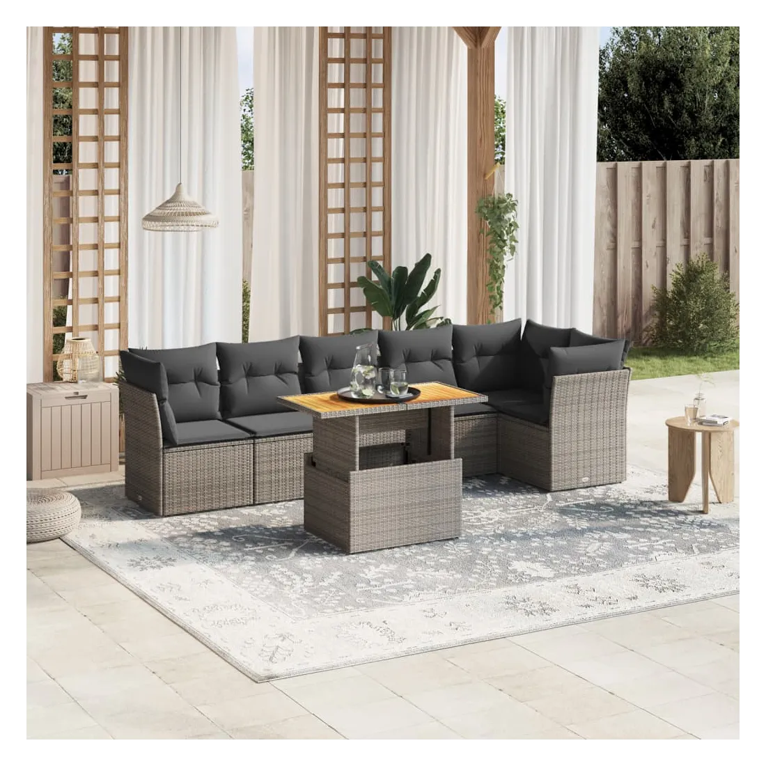 Cet ensemble de canapés de jardin est le complément parfait de votre arrière-cour, terrasse ou patio, offrant un espace confortable et accueillant pour discuter avec la famille et les amis ou simplement se détendre et profiter de l'extérieur. Matériau durable : la résine tressée, également connue sous le nom de poly rotin, est un matériau synthétique solide et nécessitant peu d'entretien qui ressemble au rotin naturel. Il est léger, facile à nettoyer et couramment utilisé pour les meubles d'extérieur en raison de sa durabilité et de ses propriétés de résistance aux intempéries.Dessus de table réglable : le dessus de table peut être soulevé pour rendre la table plus haute, ce qui transforme la table d'extérieur d'une table basse à une table de salle à manger. Elle est parfaite pour recevoir des invités ou prendre des repas à l'extérieur.Expérience d'assise confortable : ce mobilier d'extérieur, doté de coussins épais, offre une expérience d'assise confortable.Housse amovible et lavable : ces coussins de siège sont dotés de housses amovibles pour un lavage et un entretien faciles.Conception modulaire : cet ensemble de meubles d'extérieur a une conception modulaire, ce qui le rend complètement flexible et facile à déplacer, afin que vous puissiez créer un agencement de meubles d'extérieur personnalisé. Bon à savoir :Pour que vos meubles d'extérieur restent beaux, nous vous recommandons de les protéger avec une housse imperméable.