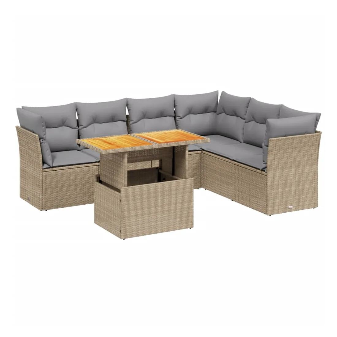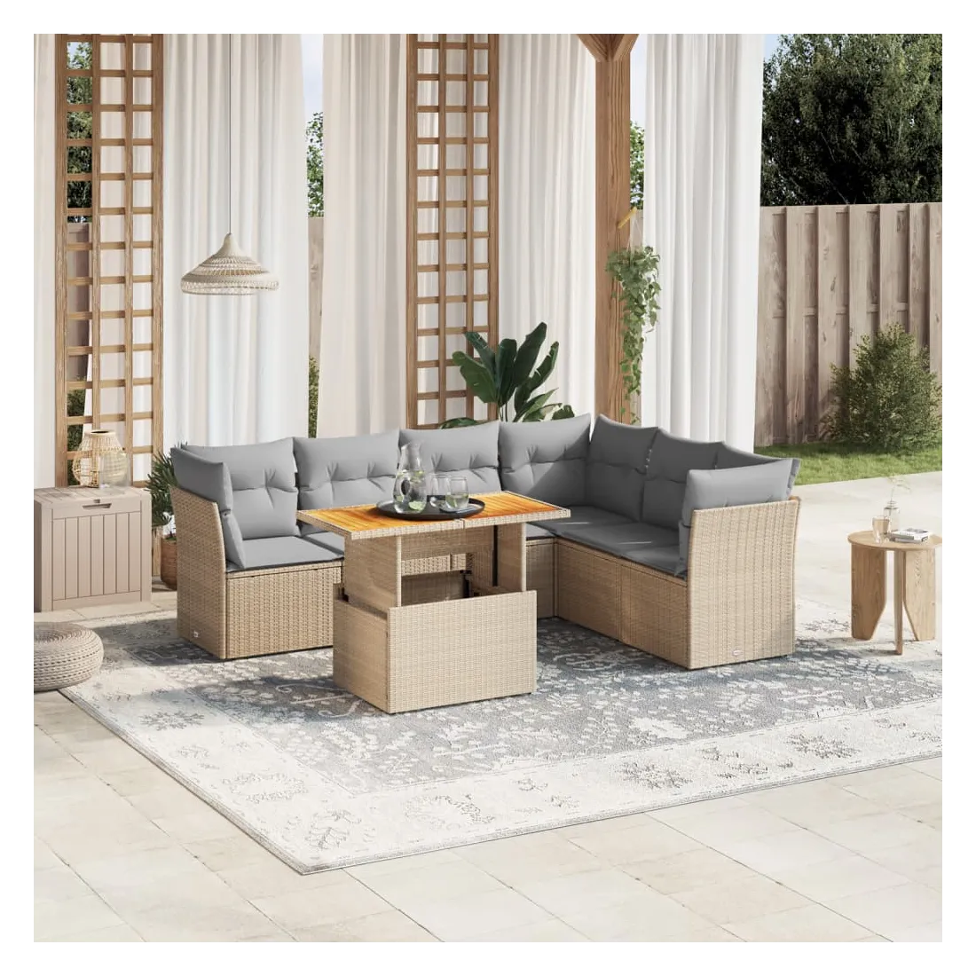 Salon de jardin avec coussins 7 pcs beige résine tressée