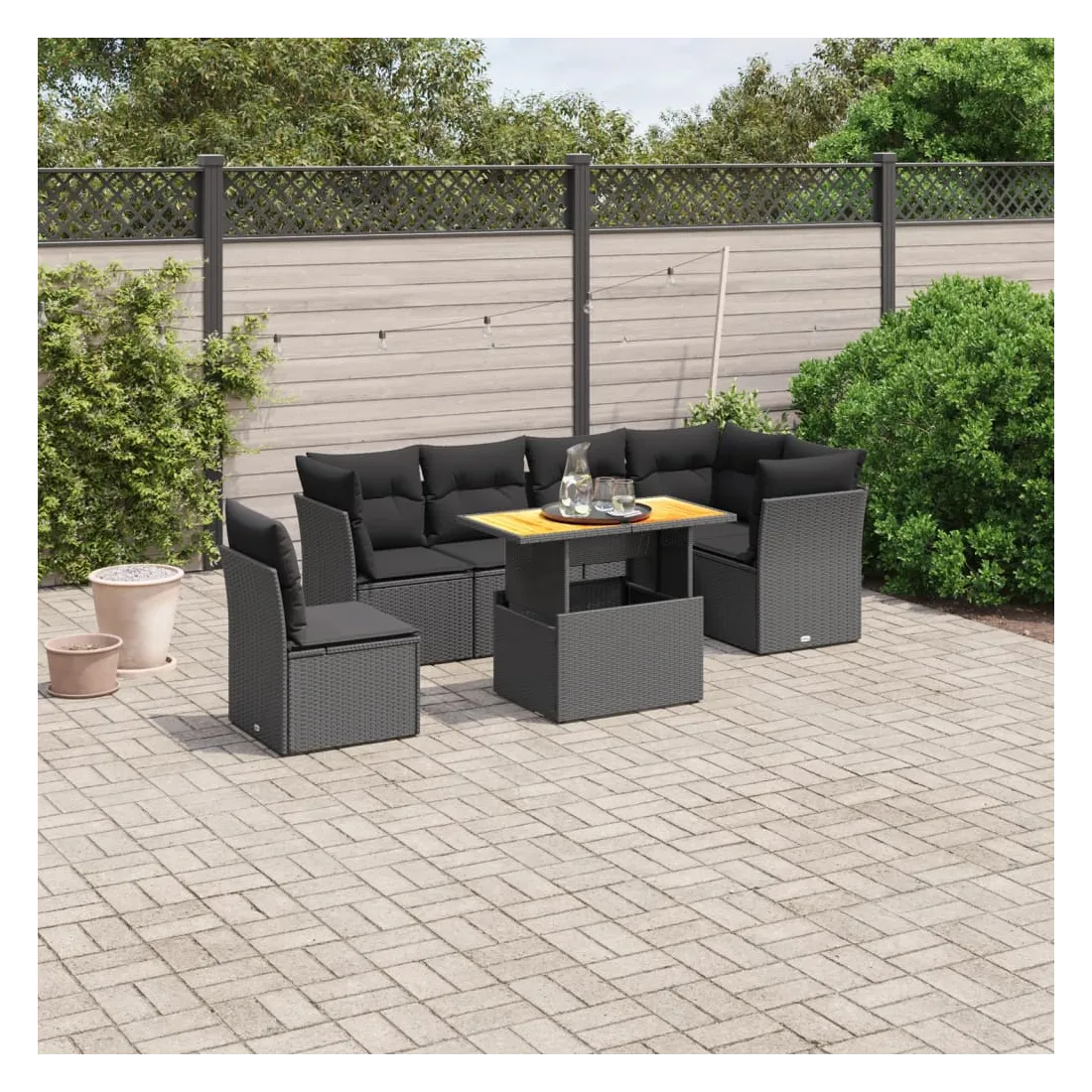 Salon de jardin 7 pcs avec coussins noir résine tressée