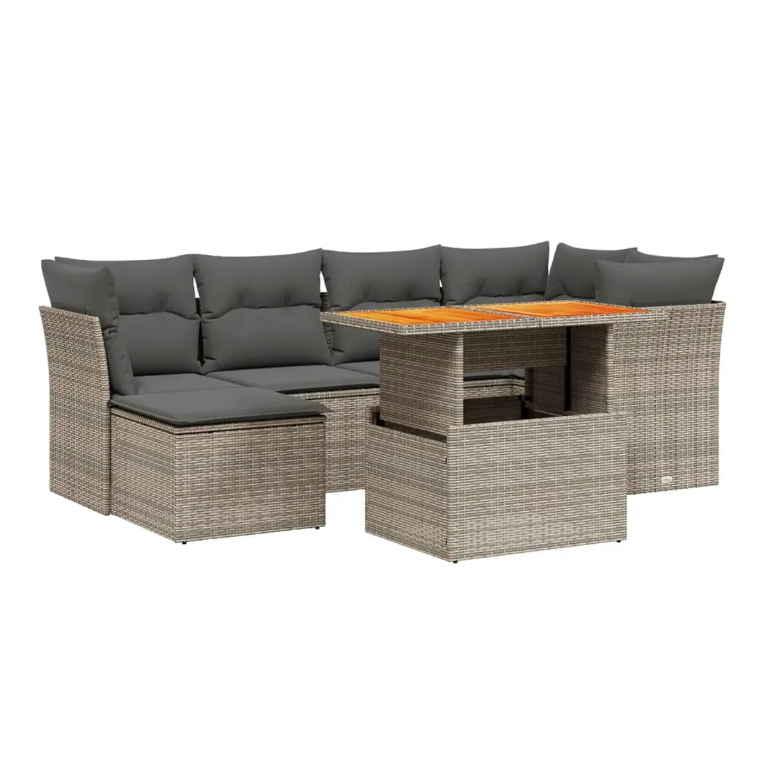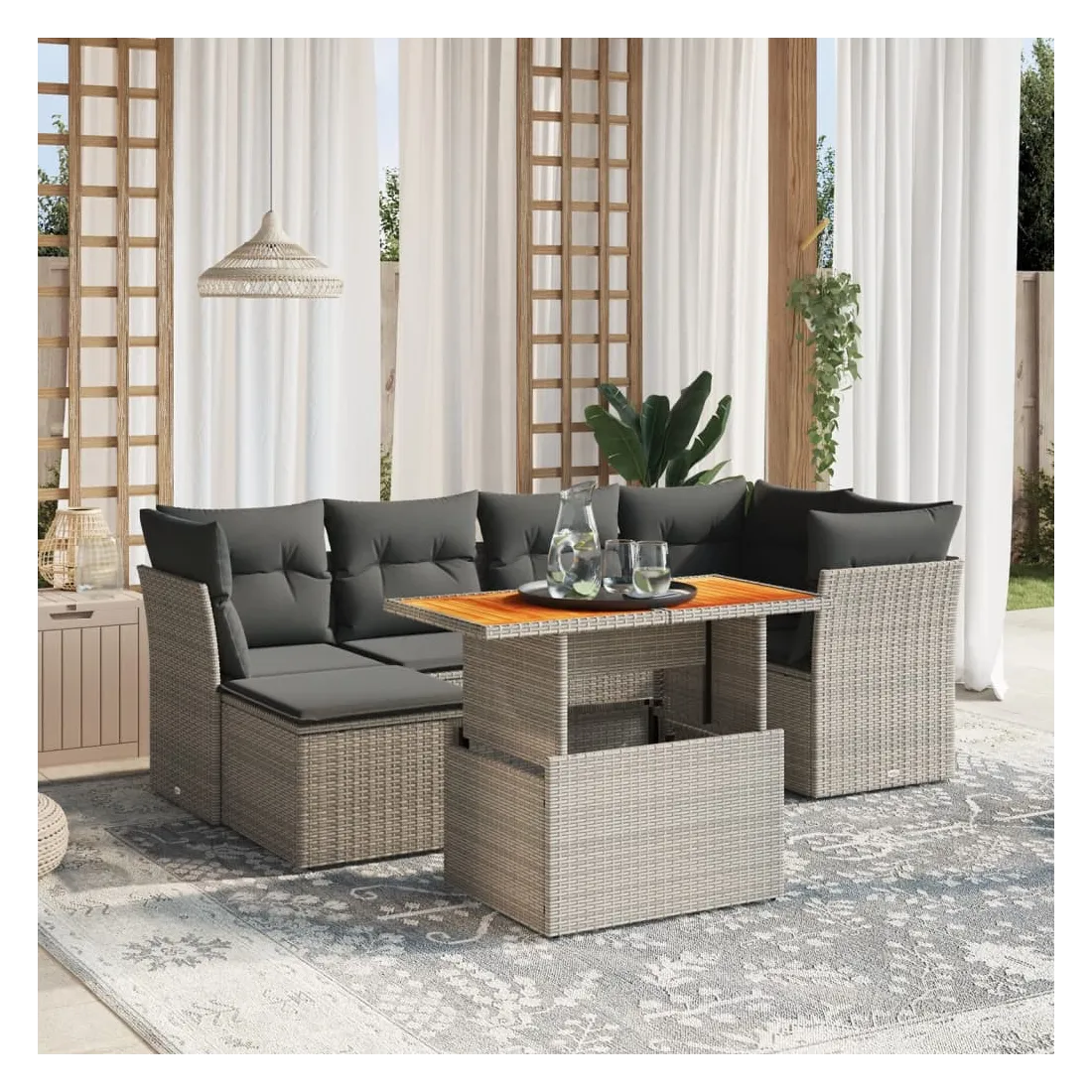 Cet ensemble de canapés de jardin est le complément parfait de votre arrière-cour, terrasse ou patio, offrant un espace confortable et accueillant pour discuter avec la famille et les amis ou simplement se détendre et profiter de l'extérieur. Matériau durable : la résine tressée, également connue sous le nom de poly rotin, est un matériau synthétique solide et nécessitant peu d'entretien qui ressemble au rotin naturel. Il est léger, facile à nettoyer et couramment utilisé pour les meubles d'extérieur en raison de sa durabilité et de ses propriétés de résistance aux intempéries.Dessus de table réglable : le dessus de table peut être soulevé pour rendre la table plus haute, ce qui transforme la table d'extérieur d'une table basse à une table de salle à manger. Elle est parfaite pour recevoir des invités ou prendre des repas à l'extérieur.Expérience d'assise confortable : ce mobilier d'extérieur, doté de coussins épais, offre une expérience d'assise confortable.Housse amovible et lavable : ces coussins de siège sont dotés de housses amovibles pour un lavage et un entretien faciles.Conception modulaire : cet ensemble de meubles d'extérieur a une conception modulaire, ce qui le rend complètement flexible et facile à déplacer, afin que vous puissiez créer un agencement de meubles d'extérieur personnalisé. Bon à savoir :Pour que vos meubles d'extérieur restent beaux, nous vous recommandons de les protéger avec une housse imperméable.