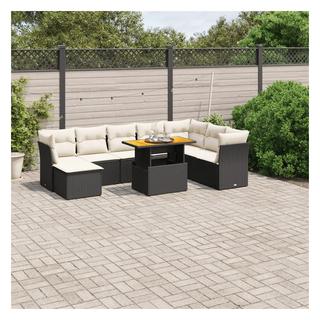 Cet ensemble de canapés de jardin est le complément parfait de votre arrière-cour, terrasse ou patio, offrant un espace confortable et accueillant pour discuter avec la famille et les amis ou simplement se détendre et profiter de l'extérieur. Matériau durable : la résine tressée, également connue sous le nom de poly rotin, est un matériau synthétique solide et nécessitant peu d'entretien qui ressemble au rotin naturel. Il est léger, facile à nettoyer et couramment utilisé pour les meubles d'extérieur en raison de sa durabilité et de ses propriétés de résistance aux intempéries.Dessus de table réglable : le dessus de table peut être soulevé pour rendre la table plus haute, ce qui transforme la table d'extérieur d'une table basse à une table de salle à manger. Elle est parfaite pour recevoir des invités ou prendre des repas à l'extérieur.Expérience d'assise confortable : ce mobilier d'extérieur, doté de coussins épais, offre une expérience d'assise confortable.Housse amovible et lavable : ces coussins de siège sont dotés de housses amovibles pour un lavage et un entretien faciles.Conception modulaire : cet ensemble de meubles d'extérieur a une conception modulaire, ce qui le rend complètement flexible et facile à déplacer, afin que vous puissiez créer un agencement de meubles d'extérieur personnalisé. Bon à savoir :Pour que vos meubles d'extérieur restent beaux, nous vous recommandons de les protéger avec une housse imperméable.