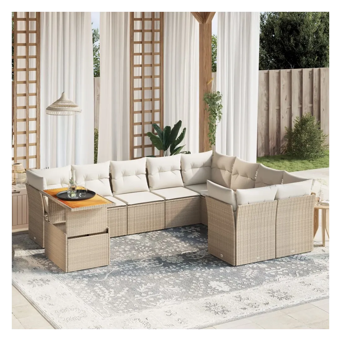Cet ensemble de canapés de jardin est le complément parfait de votre arrière-cour, terrasse ou patio, offrant un espace confortable et accueillant pour discuter avec la famille et les amis ou simplement se détendre et profiter de l'extérieur. Matériau durable : la résine tressée, également connue sous le nom de poly rotin, est un matériau synthétique solide et nécessitant peu d'entretien qui ressemble au rotin naturel. Il est léger, facile à nettoyer et couramment utilisé pour les meubles d'extérieur en raison de sa durabilité et de ses propriétés de résistance aux intempéries.Dessus de table réglable : le dessus de table peut être soulevé pour rendre la table plus haute, ce qui transforme la table d'extérieur d'une table basse à une table de salle à manger. Elle est parfaite pour recevoir des invités ou prendre des repas à l'extérieur.Expérience d'assise confortable : ce mobilier d'extérieur, doté de coussins épais, offre une expérience d'assise confortable.Housse amovible et lavable : ces coussins de siège sont dotés de housses amovibles pour un lavage et un entretien faciles.Conception modulaire : cet ensemble de meubles d'extérieur a une conception modulaire, ce qui le rend complètement flexible et facile à déplacer, afin que vous puissiez créer un agencement de meubles d'extérieur personnalisé. Bon à savoir :Pour que vos meubles d'extérieur restent beaux, nous vous recommandons de les protéger avec une housse imperméable.