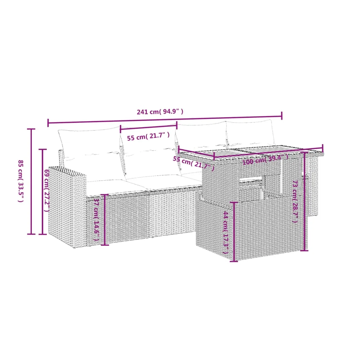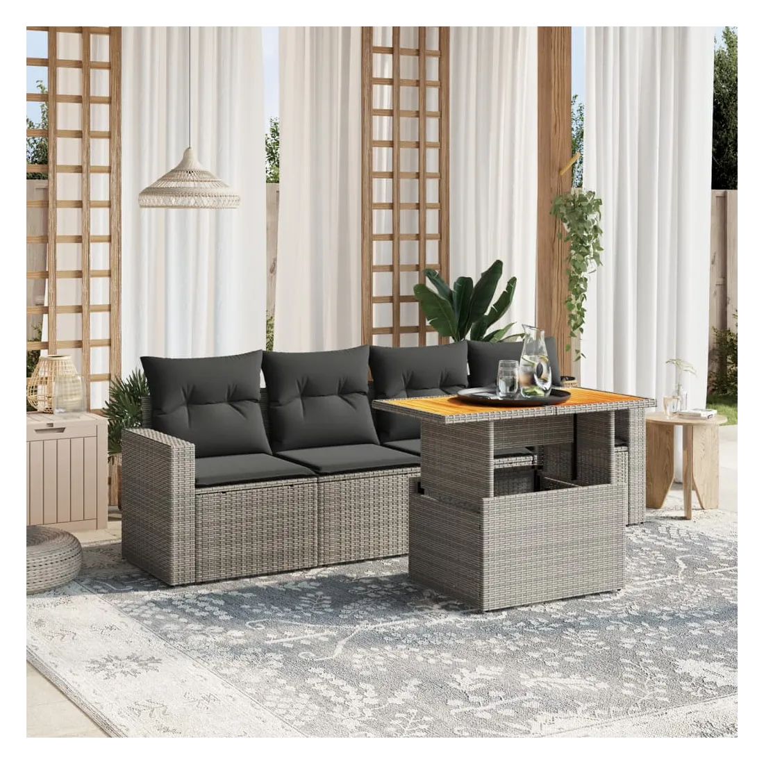 Cet ensemble de canapés de jardin est le complément parfait de votre arrière-cour, terrasse ou patio, offrant un espace confortable et accueillant pour discuter avec la famille et les amis ou simplement se détendre et profiter de l'extérieur. Matériau durable : la résine tressée, également connue sous le nom de poly rotin, est un matériau synthétique solide et nécessitant peu d'entretien qui ressemble au rotin naturel. Il est léger, facile à nettoyer et couramment utilisé pour les meubles d'extérieur en raison de sa durabilité et de ses propriétés de résistance aux intempéries.Dessus de table réglable : le dessus de table peut être soulevé pour rendre la table plus haute, ce qui transforme la table d'extérieur d'une table basse à une table de salle à manger. Elle est parfaite pour recevoir des invités ou prendre des repas à l'extérieur.Expérience d'assise confortable : ce mobilier d'extérieur, doté de coussins épais, offre une expérience d'assise confortable.Housse amovible et lavable : ces coussins de siège sont dotés de housses amovibles pour un lavage et un entretien faciles.Conception modulaire : cet ensemble de meubles d'extérieur a une conception modulaire, ce qui le rend complètement flexible et facile à déplacer, afin que vous puissiez créer un agencement de meubles d'extérieur personnalisé. Bon à savoir :Pour que vos meubles d'extérieur restent beaux, nous vous recommandons de les protéger avec une housse imperméable.