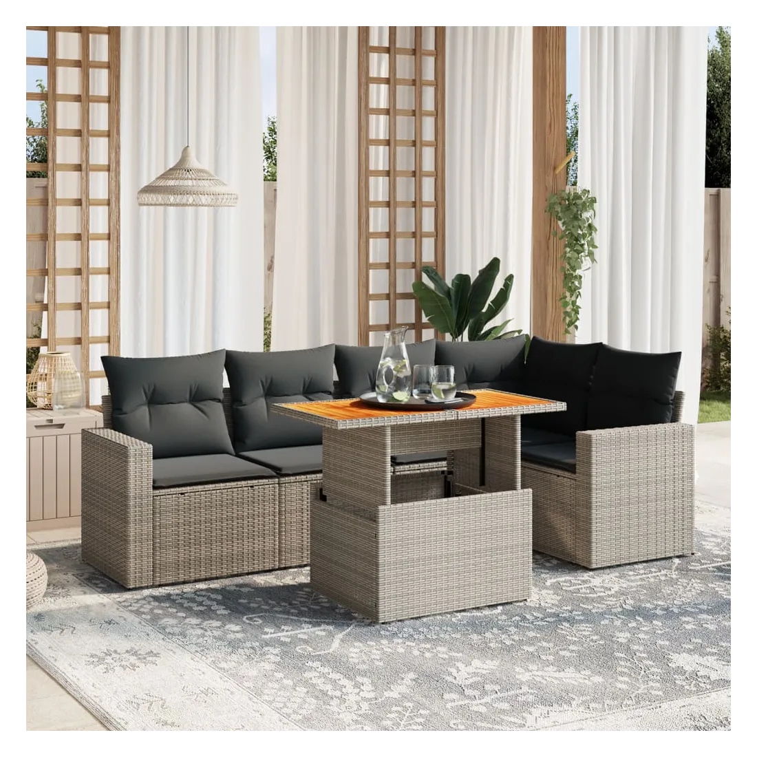Cet ensemble de canapés de jardin est le complément parfait de votre arrière-cour, terrasse ou patio, offrant un espace confortable et accueillant pour discuter avec la famille et les amis ou simplement se détendre et profiter de l'extérieur. Matériau durable : la résine tressée, également connue sous le nom de poly rotin, est un matériau synthétique solide et nécessitant peu d'entretien qui ressemble au rotin naturel. Il est léger, facile à nettoyer et couramment utilisé pour les meubles d'extérieur en raison de sa durabilité et de ses propriétés de résistance aux intempéries.Dessus de table réglable : le dessus de table peut être soulevé pour rendre la table plus haute, ce qui transforme la table d'extérieur d'une table basse à une table de salle à manger. Elle est parfaite pour recevoir des invités ou prendre des repas à l'extérieur.Expérience d'assise confortable : ce mobilier d'extérieur, doté de coussins épais, offre une expérience d'assise confortable.Housse amovible et lavable : ces coussins de siège sont dotés de housses amovibles pour un lavage et un entretien faciles.Conception modulaire : cet ensemble de meubles d'extérieur a une conception modulaire, ce qui le rend complètement flexible et facile à déplacer, afin que vous puissiez créer un agencement de meubles d'extérieur personnalisé. Bon à savoir :Pour que vos meubles d'extérieur restent beaux, nous vous recommandons de les protéger avec une housse imperméable.