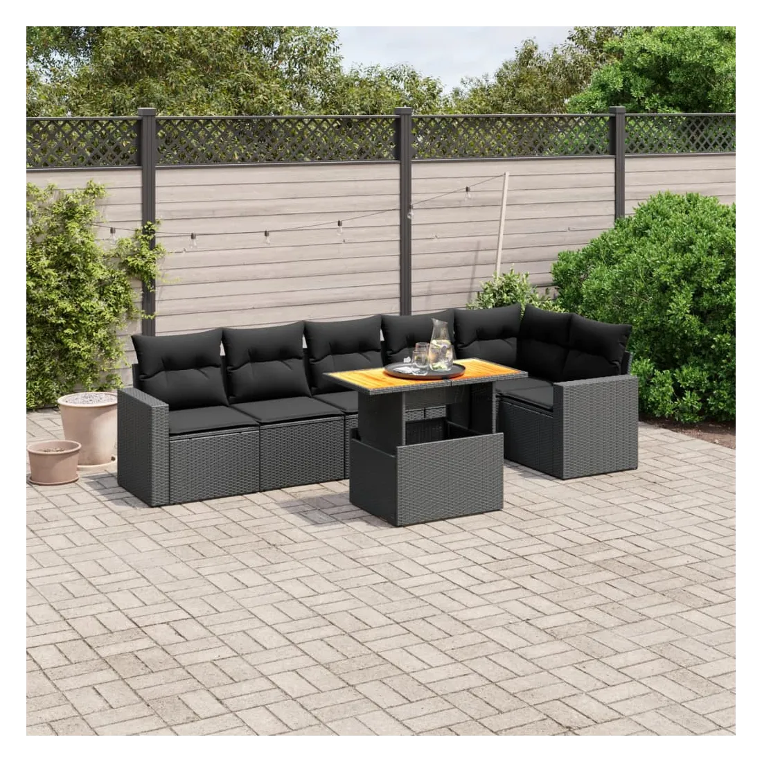 Cet ensemble de canapés de jardin est le complément parfait de votre arrière-cour, terrasse ou patio, offrant un espace confortable et accueillant pour discuter avec la famille et les amis ou simplement se détendre et profiter de l'extérieur. Matériau durable : la résine tressée, également connue sous le nom de poly rotin, est un matériau synthétique solide et nécessitant peu d'entretien qui ressemble au rotin naturel. Il est léger, facile à nettoyer et couramment utilisé pour les meubles d'extérieur en raison de sa durabilité et de ses propriétés de résistance aux intempéries.Dessus de table réglable : le dessus de table peut être soulevé pour rendre la table plus haute, ce qui transforme la table d'extérieur d'une table basse à une table de salle à manger. Elle est parfaite pour recevoir des invités ou prendre des repas à l'extérieur.Expérience d'assise confortable : ce mobilier d'extérieur, doté de coussins épais, offre une expérience d'assise confortable.Housse amovible et lavable : ces coussins de siège sont dotés de housses amovibles pour un lavage et un entretien faciles.Conception modulaire : cet ensemble de meubles d'extérieur a une conception modulaire, ce qui le rend complètement flexible et facile à déplacer, afin que vous puissiez créer un agencement de meubles d'extérieur personnalisé. Bon à savoir :Pour que vos meubles d'extérieur restent beaux, nous vous recommandons de les protéger avec une housse imperméable.