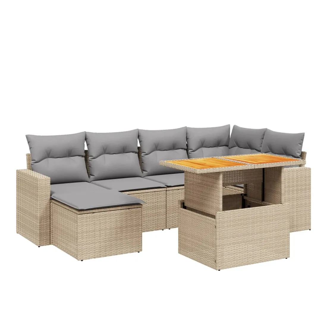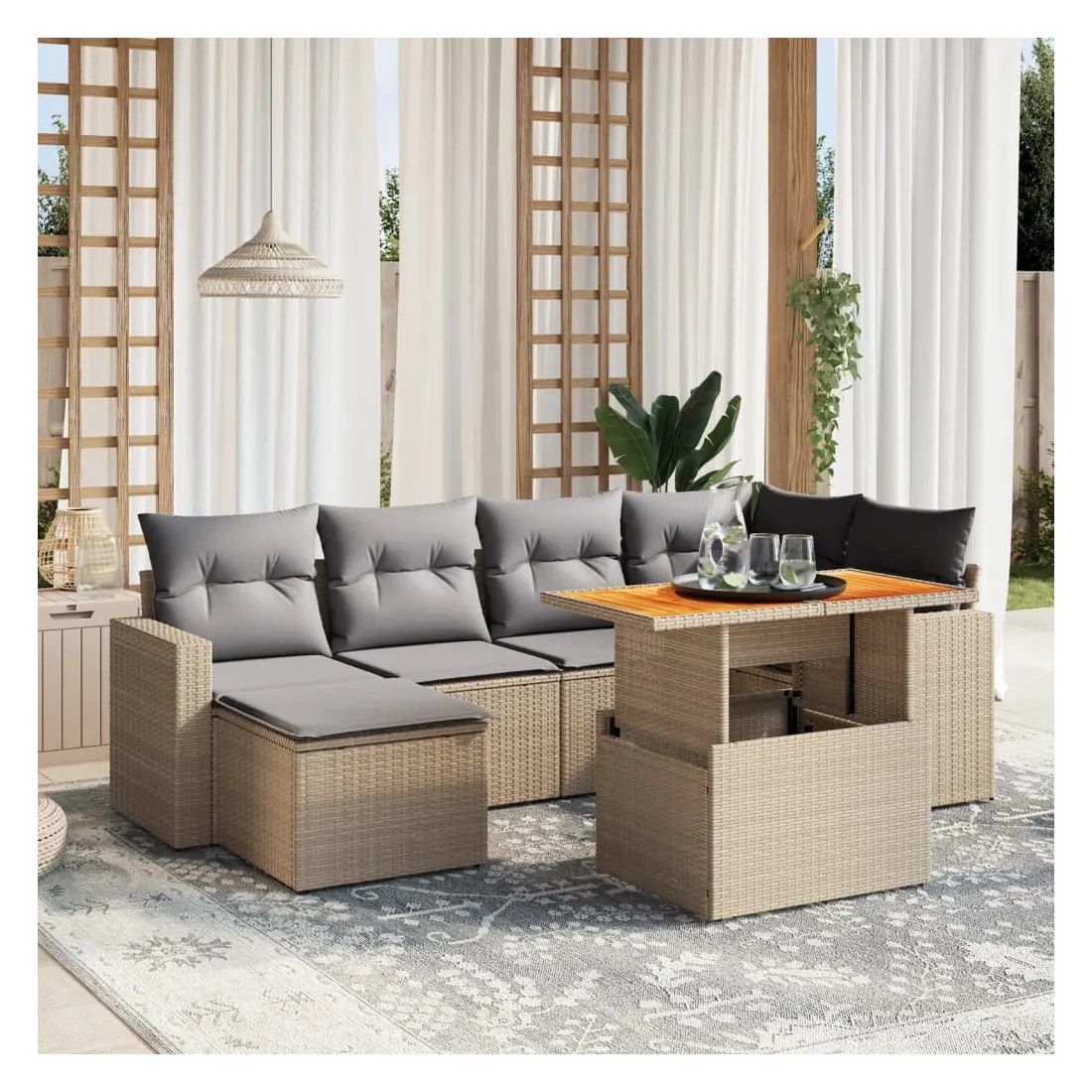 Cet ensemble de canapés de jardin est le complément parfait de votre arrière-cour, terrasse ou patio, offrant un espace confortable et accueillant pour discuter avec la famille et les amis ou simplement se détendre et profiter de l'extérieur. Matériau durable : la résine tressée, également connue sous le nom de poly rotin, est un matériau synthétique solide et nécessitant peu d'entretien qui ressemble au rotin naturel. Il est léger, facile à nettoyer et couramment utilisé pour les meubles d'extérieur en raison de sa durabilité et de ses propriétés de résistance aux intempéries.Dessus de table réglable : le dessus de table peut être soulevé pour rendre la table plus haute, ce qui transforme la table d'extérieur d'une table basse à une table de salle à manger. Elle est parfaite pour recevoir des invités ou prendre des repas à l'extérieur.Expérience d'assise confortable : ce mobilier d'extérieur, doté de coussins épais, offre une expérience d'assise confortable.Housse amovible et lavable : ces coussins de siège sont dotés de housses amovibles pour un lavage et un entretien faciles.Conception modulaire : cet ensemble de meubles d'extérieur a une conception modulaire, ce qui le rend complètement flexible et facile à déplacer, afin que vous puissiez créer un agencement de meubles d'extérieur personnalisé. Bon à savoir :Pour que vos meubles d'extérieur restent beaux, nous vous recommandons de les protéger avec une housse imperméable.