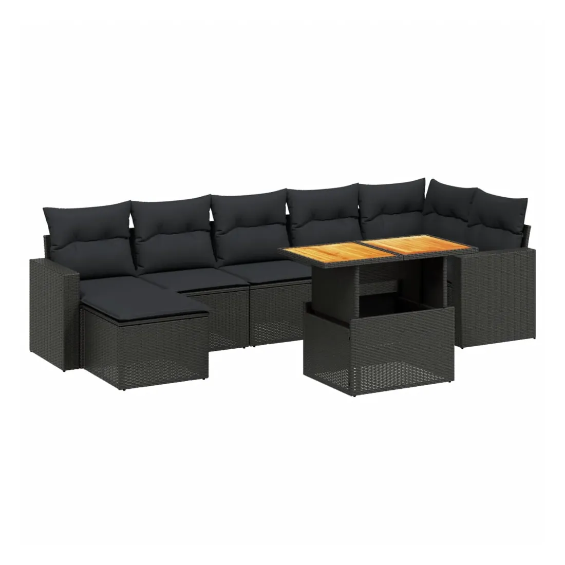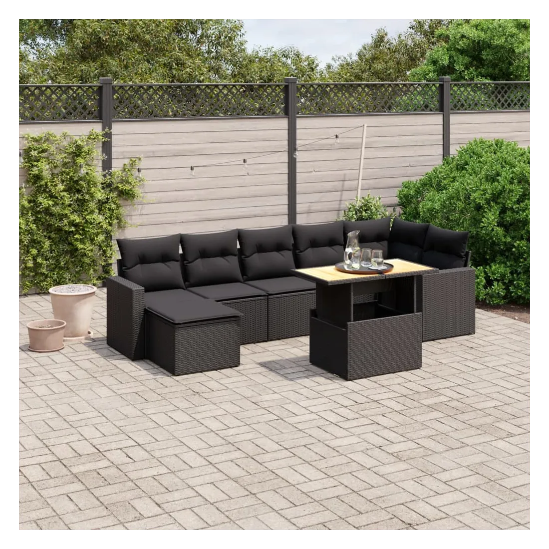 Salon de jardin 8 pcs avec coussins noir résine tressée