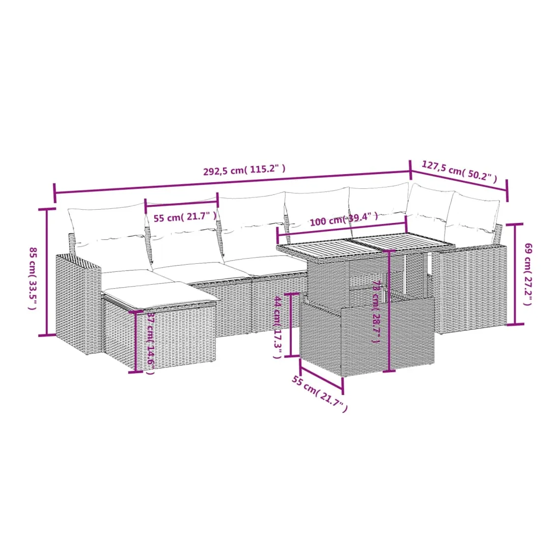 • 7 x coussin de siège avec housse amovible et lavable