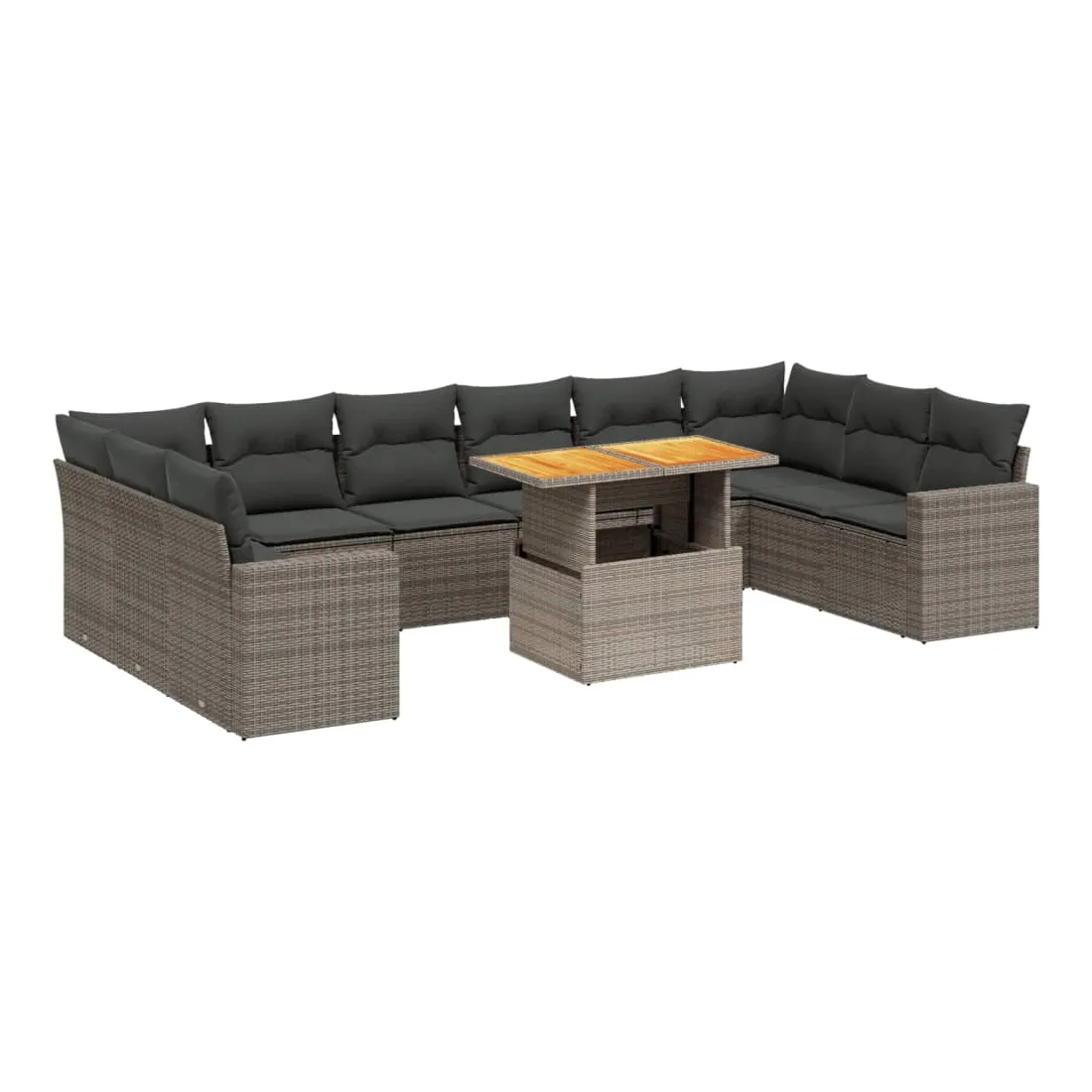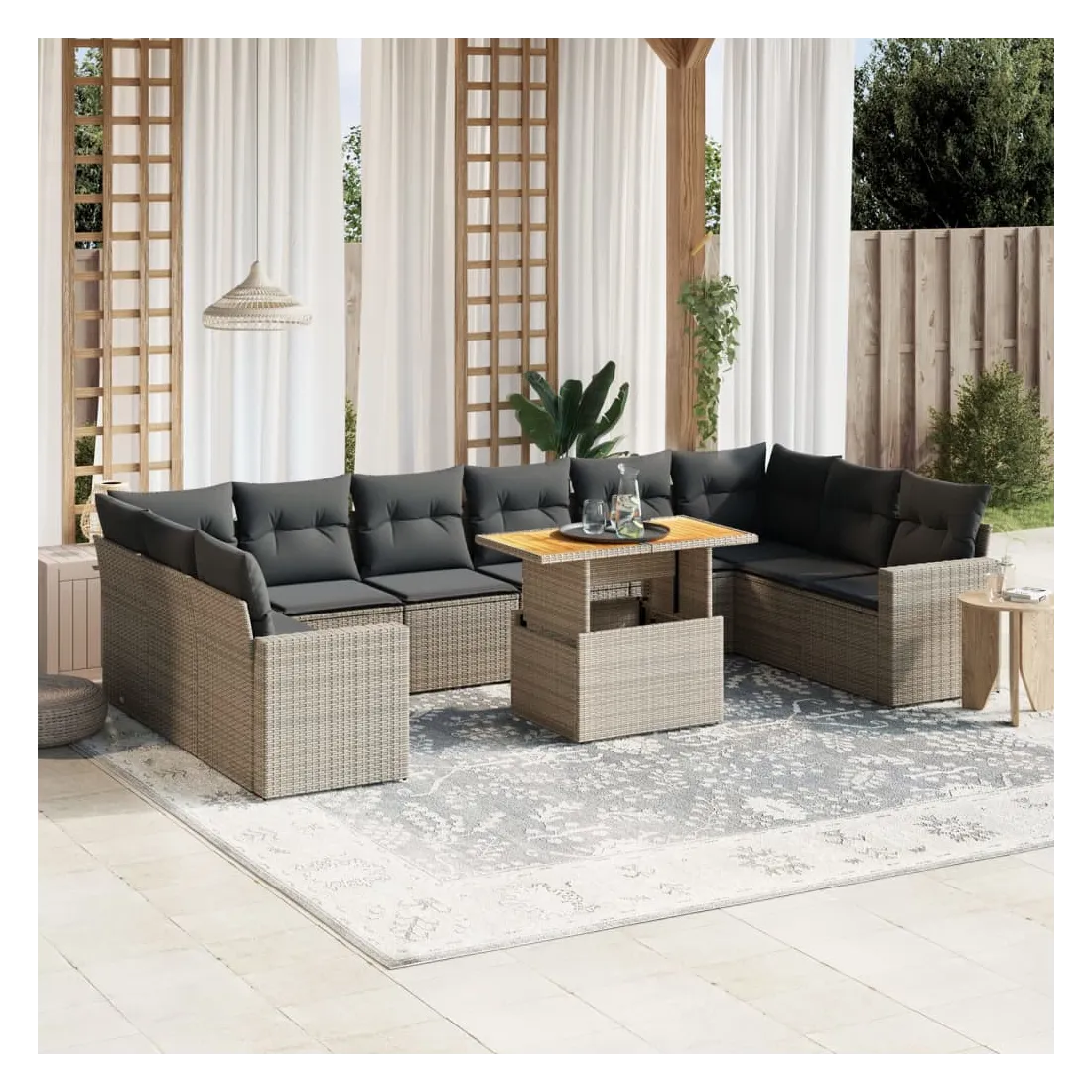 Cet ensemble de canapés de jardin est le complément parfait de votre arrière-cour, terrasse ou patio, offrant un espace confortable et accueillant pour discuter avec la famille et les amis ou simplement se détendre et profiter de l'extérieur. Matériau durable : la résine tressée, également connue sous le nom de poly rotin, est un matériau synthétique solide et nécessitant peu d'entretien qui ressemble au rotin naturel. Il est léger, facile à nettoyer et couramment utilisé pour les meubles d'extérieur en raison de sa durabilité et de ses propriétés de résistance aux intempéries.Dessus de table réglable : le dessus de table peut être soulevé pour rendre la table plus haute, ce qui transforme la table d'extérieur d'une table basse à une table de salle à manger. Elle est parfaite pour recevoir des invités ou prendre des repas à l'extérieur.Expérience d'assise confortable : ce mobilier d'extérieur, doté de coussins épais, offre une expérience d'assise confortable.Housse amovible et lavable : ces coussins de siège sont dotés de housses amovibles pour un lavage et un entretien faciles.Conception modulaire : cet ensemble de meubles d'extérieur a une conception modulaire, ce qui le rend complètement flexible et facile à déplacer, afin que vous puissiez créer un agencement de meubles d'extérieur personnalisé. Bon à savoir :Pour que vos meubles d'extérieur restent beaux, nous vous recommandons de les protéger avec une housse imperméable.