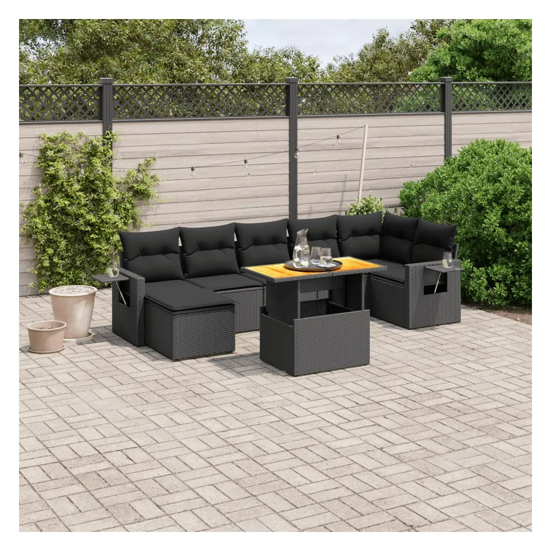 Cet ensemble de canapés de jardin est le complément parfait de votre arrière-cour, terrasse ou patio, offrant un espace confortable et accueillant pour discuter avec la famille et les amis ou simplement se détendre et profiter de l'extérieur. Matériau durable : la résine tressée, également connue sous le nom de poly rotin, est un matériau synthétique solide et nécessitant peu d'entretien qui ressemble au rotin naturel. Il est léger, facile à nettoyer et couramment utilisé pour les meubles d'extérieur en raison de sa durabilité et de ses propriétés de résistance aux intempéries.Dessus de table réglable : le dessus de table peut être soulevé pour rendre la table plus haute, ce qui transforme la table d'extérieur d'une table basse à une table de salle à manger. Elle est parfaite pour recevoir des invités ou prendre des repas à l'extérieur.Table d'appoint pratique : ce mobilier d'extérieur comprend une table d'appoint pliable avec un ressort à gaz sur les accoudoirs, offrant un endroit pratique pour garder vos essentiels à portée de main.Housse amovible et lavable : ces coussins de siège sont dotés de housses amovibles pour un lavage et un entretien faciles.Conception modulaire : cet ensemble de meubles d'extérieur a une conception modulaire, ce qui le rend complètement flexible et facile à déplacer, afin que vous puissiez créer un agencement de meubles d'extérieur personnalisé. Bon à savoir :Pour que vos meubles d'extérieur restent beaux, nous vous recommandons de les protéger avec une housse imperméable.