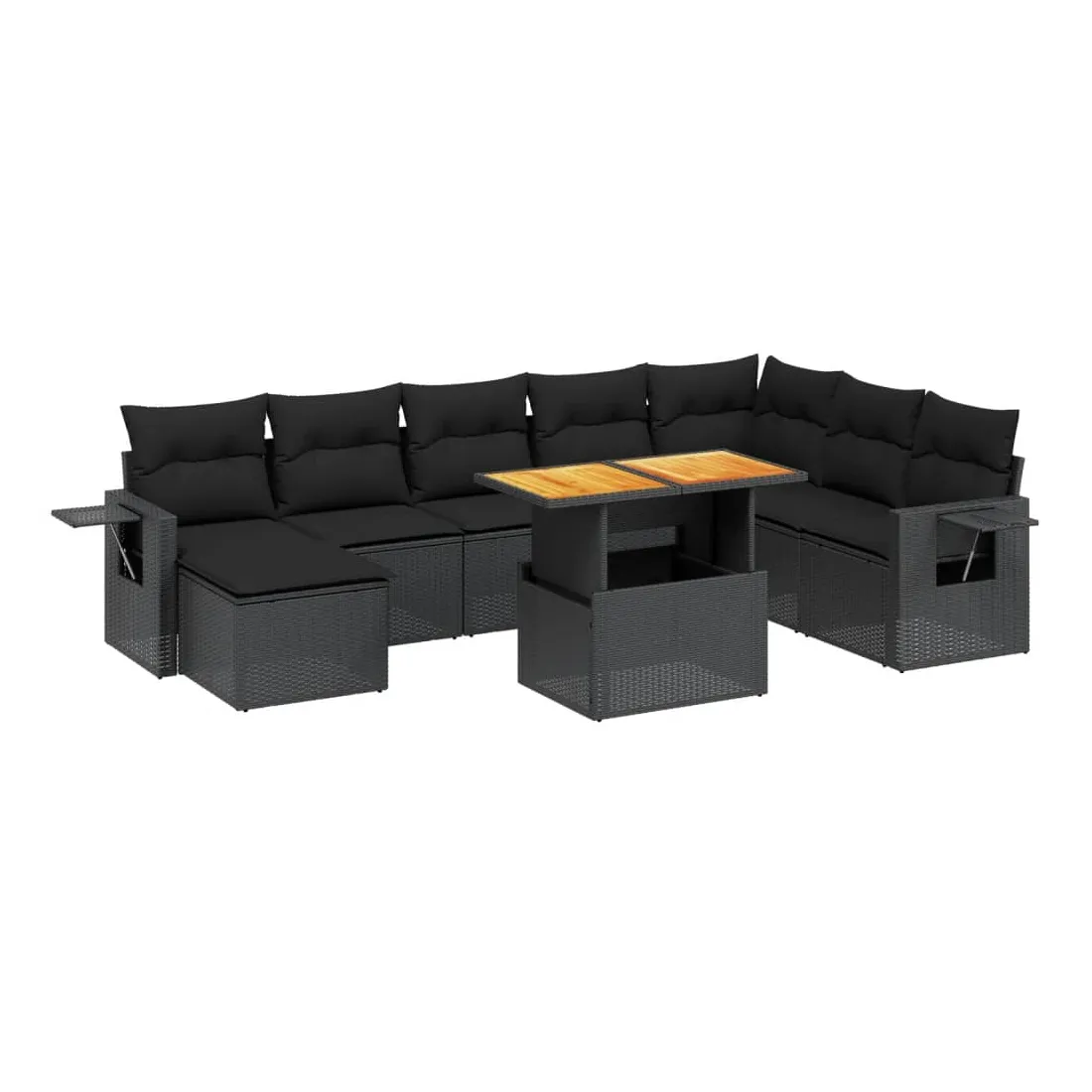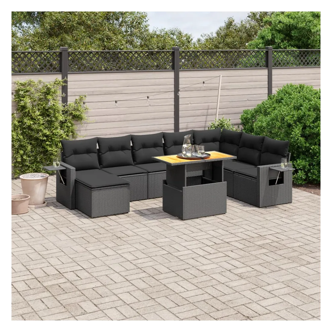 Cet ensemble de canapés de jardin est le complément parfait de votre arrière-cour, terrasse ou patio, offrant un espace confortable et accueillant pour discuter avec la famille et les amis ou simplement se détendre et profiter de l'extérieur. Matériau durable : la résine tressée, également connue sous le nom de poly rotin, est un matériau synthétique solide et nécessitant peu d'entretien qui ressemble au rotin naturel. Il est léger, facile à nettoyer et couramment utilisé pour les meubles d'extérieur en raison de sa durabilité et de ses propriétés de résistance aux intempéries.Dessus de table réglable : le dessus de table peut être soulevé pour rendre la table plus haute, ce qui transforme la table d'extérieur d'une table basse à une table de salle à manger. Elle est parfaite pour recevoir des invités ou prendre des repas à l'extérieur.Table d'appoint pratique : ce mobilier d'extérieur comprend une table d'appoint pliable avec un ressort à gaz sur les accoudoirs, offrant un endroit pratique pour garder vos essentiels à portée de main.Housse amovible et lavable : ces coussins de siège sont dotés de housses amovibles pour un lavage et un entretien faciles.Conception modulaire : cet ensemble de meubles d'extérieur a une conception modulaire, ce qui le rend complètement flexible et facile à déplacer, afin que vous puissiez créer un agencement de meubles d'extérieur personnalisé. Bon à savoir :Pour que vos meubles d'extérieur restent beaux, nous vous recommandons de les protéger avec une housse imperméable.