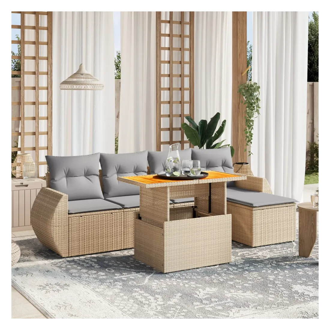 Cet ensemble de canapés de jardin est le complément parfait de votre arrière-cour, terrasse ou patio, offrant un espace confortable et accueillant pour discuter avec la famille et les amis ou simplement se détendre et profiter de l'extérieur. Matériau durable : la résine tressée, également connue sous le nom de poly rotin, est un matériau synthétique solide et nécessitant peu d'entretien qui ressemble au rotin naturel. Il est léger, facile à nettoyer et couramment utilisé pour les meubles d'extérieur en raison de sa durabilité et de ses propriétés de résistance aux intempéries.Dessus de table réglable : le dessus de table peut être soulevé pour rendre la table plus haute, ce qui transforme la table d'extérieur d'une table basse à une table de salle à manger. Elle est parfaite pour recevoir des invités ou prendre des repas à l'extérieur.Expérience d'assise confortable : ce mobilier d'extérieur, doté de coussins épais, offre une expérience d'assise confortable.Housse amovible et lavable : ces coussins de siège sont dotés de housses amovibles pour un lavage et un entretien faciles.Conception modulaire : cet ensemble de meubles d'extérieur a une conception modulaire, ce qui le rend complètement flexible et facile à déplacer, afin que vous puissiez créer un agencement de meubles d'extérieur personnalisé. Bon à savoir :Pour que vos meubles d'extérieur restent beaux, nous vous recommandons de les protéger avec une housse imperméable.