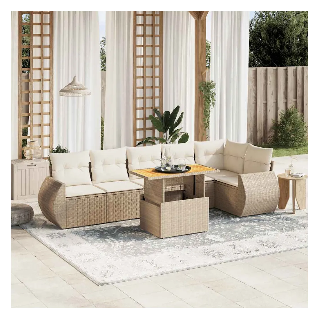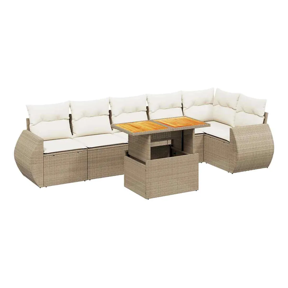 Salon de jardin avec coussins 7 pcs beige résine tressée
