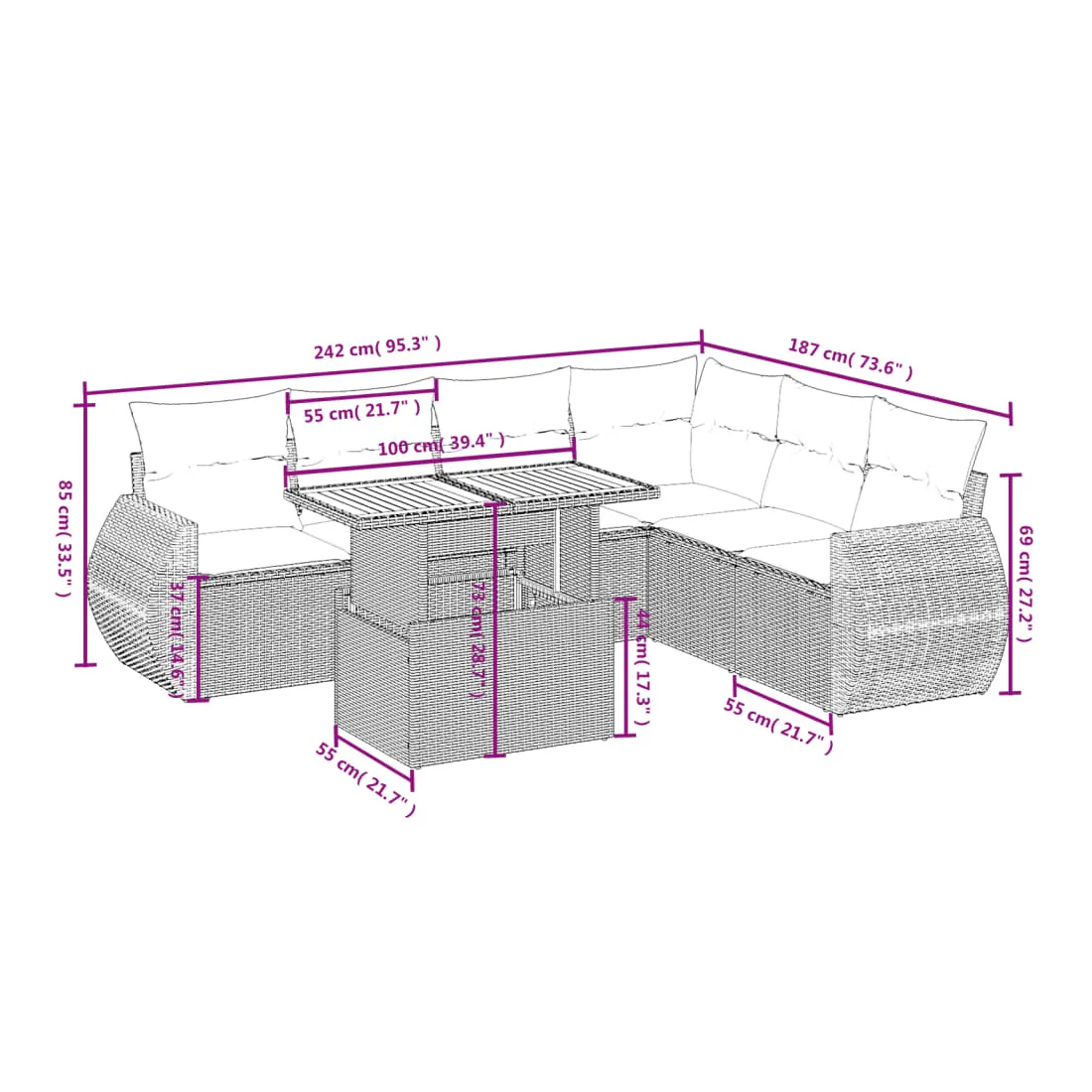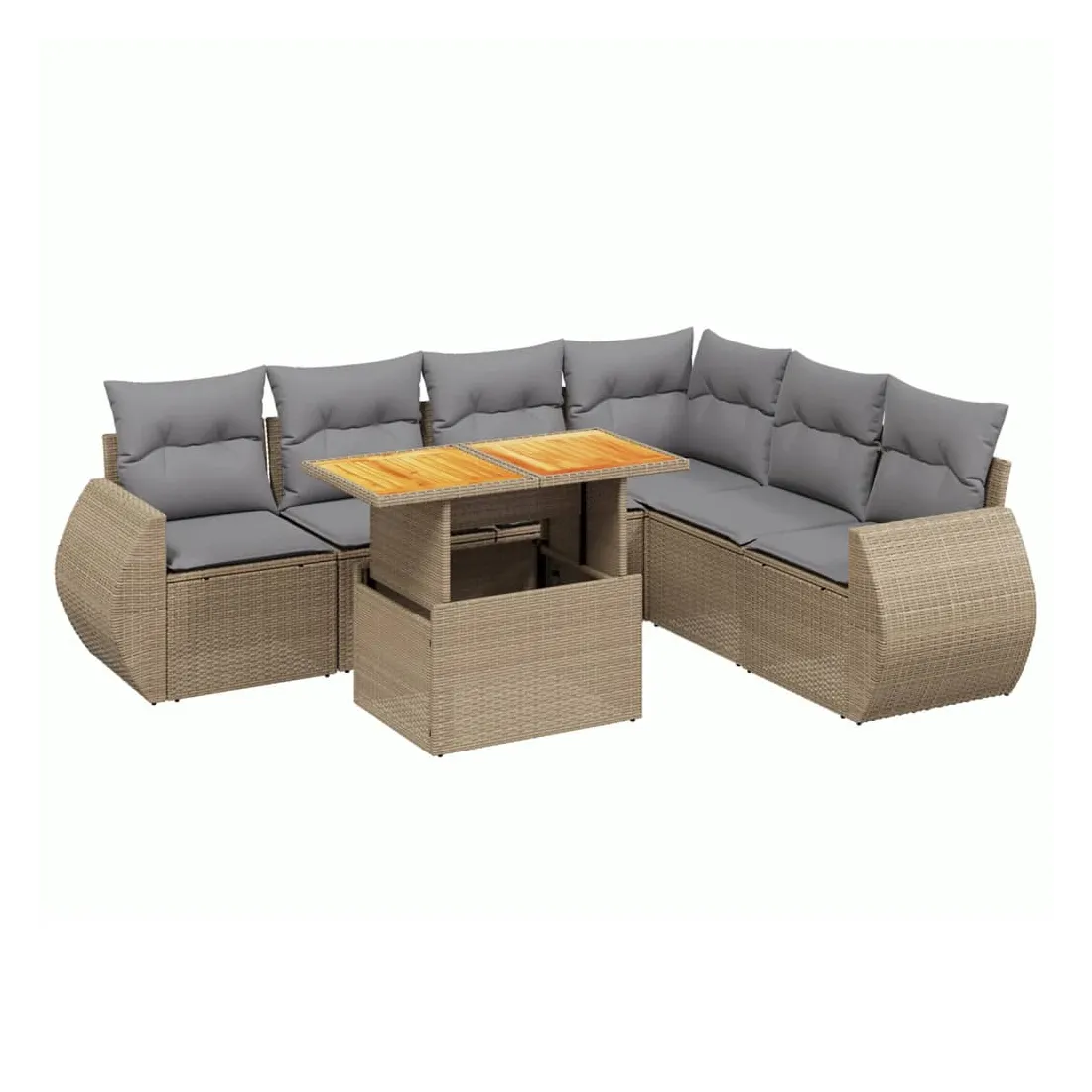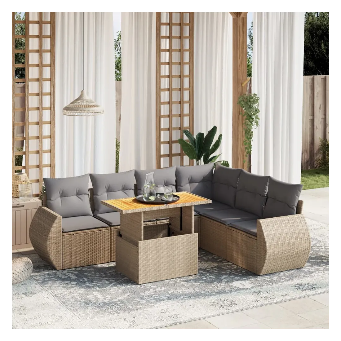 Salon de jardin avec coussins 7 pcs beige résine tressée