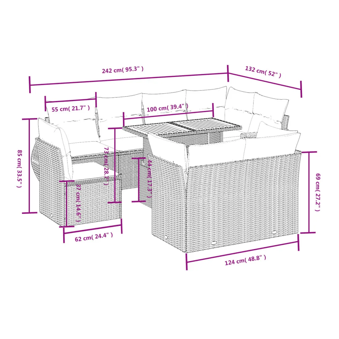Cet ensemble de canapés de jardin est le complément parfait de votre arrière-cour, terrasse ou patio, offrant un espace confortable et accueillant pour discuter avec la famille et les amis ou simplement se détendre et profiter de l'extérieur. Matériau durable : la résine tressée, également connue sous le nom de poly rotin, est un matériau synthétique solide et nécessitant peu d'entretien qui ressemble au rotin naturel. Il est léger, facile à nettoyer et couramment utilisé pour les meubles d'extérieur en raison de sa durabilité et de ses propriétés de résistance aux intempéries.Dessus de table réglable : le dessus de table peut être soulevé pour rendre la table plus haute, ce qui transforme la table d'extérieur d'une table basse à une table de salle à manger. Elle est parfaite pour recevoir des invités ou prendre des repas à l'extérieur.Expérience d'assise confortable : ce mobilier d'extérieur, doté de coussins épais, offre une expérience d'assise confortable.Housse amovible et lavable : ces coussins de siège sont dotés de housses amovibles pour un lavage et un entretien faciles.Conception modulaire : cet ensemble de meubles d'extérieur a une conception modulaire, ce qui le rend complètement flexible et facile à déplacer, afin que vous puissiez créer un agencement de meubles d'extérieur personnalisé. Bon à savoir :Pour que vos meubles d'extérieur restent beaux, nous vous recommandons de les protéger avec une housse imperméable.