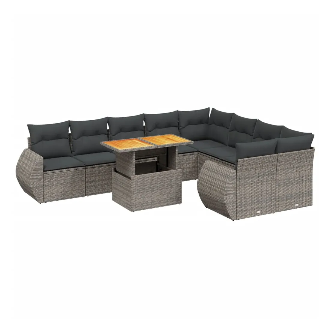 Salon de jardin avec coussins 10 pcs gris résine tressée