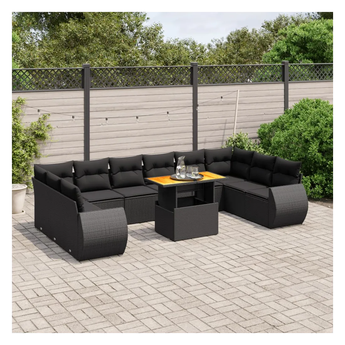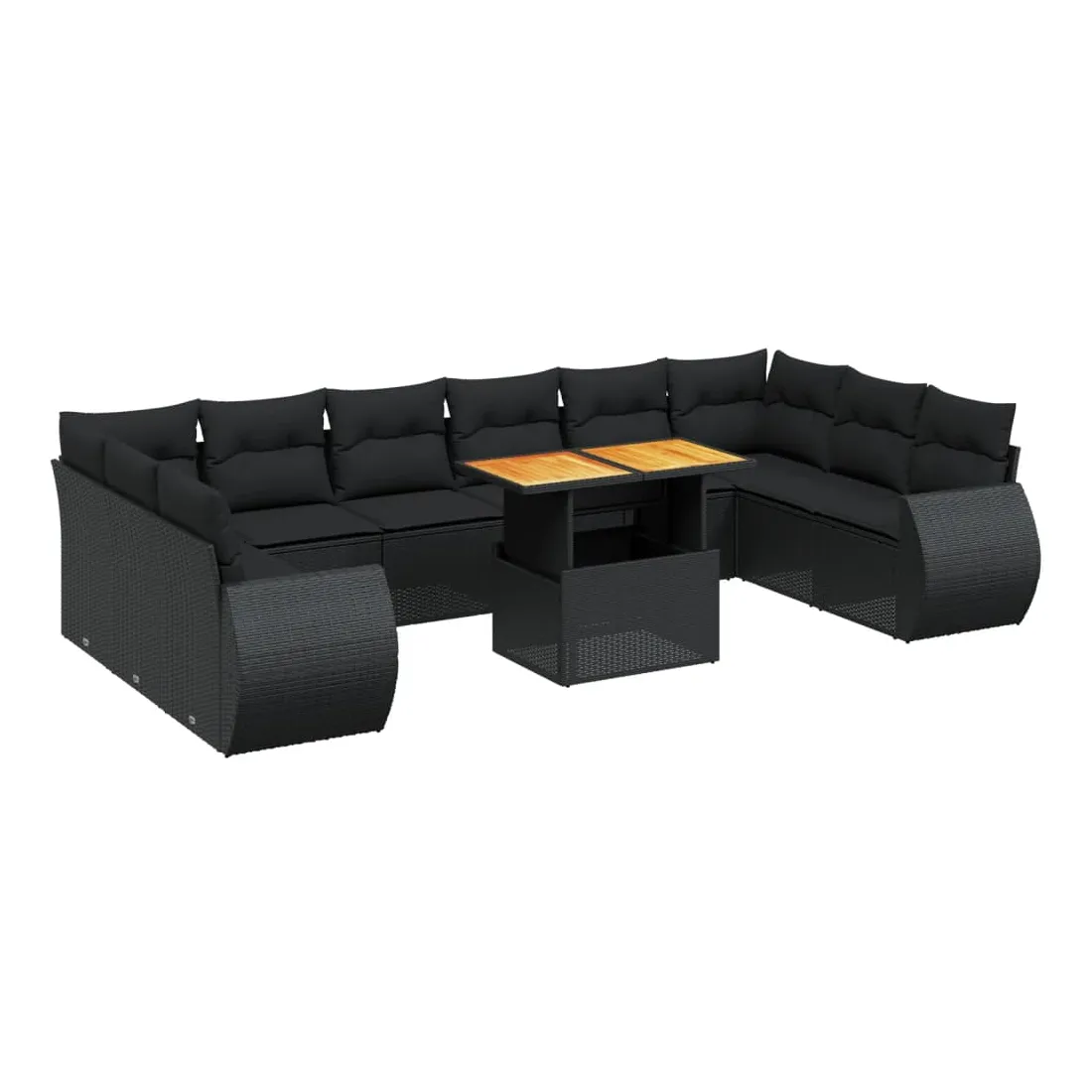 Salon de jardin 11 pcs avec coussins noir résine tressée