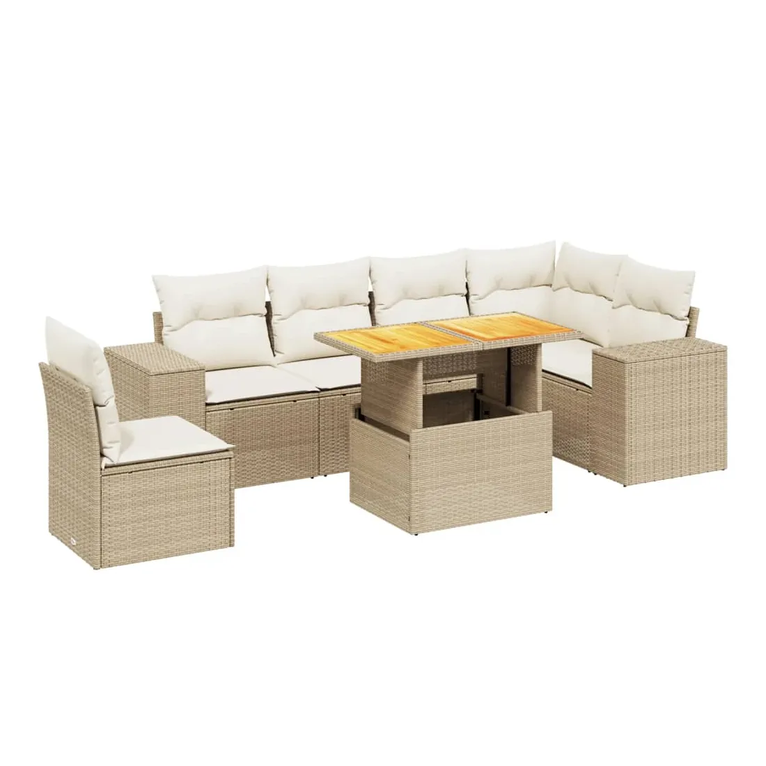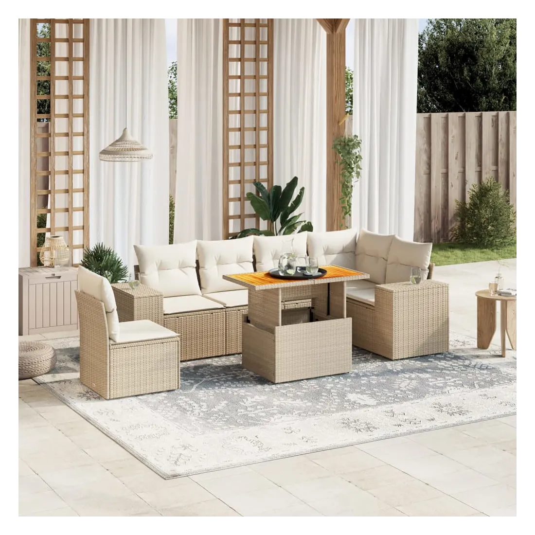 Cet ensemble de canapés de jardin est le complément parfait de votre arrière-cour, terrasse ou patio, offrant un espace confortable et accueillant pour discuter avec la famille et les amis ou simplement se détendre et profiter de l'extérieur. Matériau durable : la résine tressée, également connue sous le nom de poly rotin, est un matériau synthétique solide et nécessitant peu d'entretien qui ressemble au rotin naturel. Il est léger, facile à nettoyer et couramment utilisé pour les meubles d'extérieur en raison de sa durabilité et de ses propriétés de résistance aux intempéries.Dessus de table réglable : le dessus de table peut être soulevé pour rendre la table plus haute, ce qui transforme la table d'extérieur d'une table basse à une table de salle à manger. Elle est parfaite pour recevoir des invités ou prendre des repas à l'extérieur.Expérience d'assise confortable : ce mobilier d'extérieur, doté de coussins épais, offre une expérience d'assise confortable.Housse amovible et lavable : ces coussins de siège sont dotés de housses amovibles pour un lavage et un entretien faciles.Conception modulaire : cet ensemble de meubles d'extérieur a une conception modulaire, ce qui le rend complètement flexible et facile à déplacer, afin que vous puissiez créer un agencement de meubles d'extérieur personnalisé. Bon à savoir :Pour que vos meubles d'extérieur restent beaux, nous vous recommandons de les protéger avec une housse imperméable.
