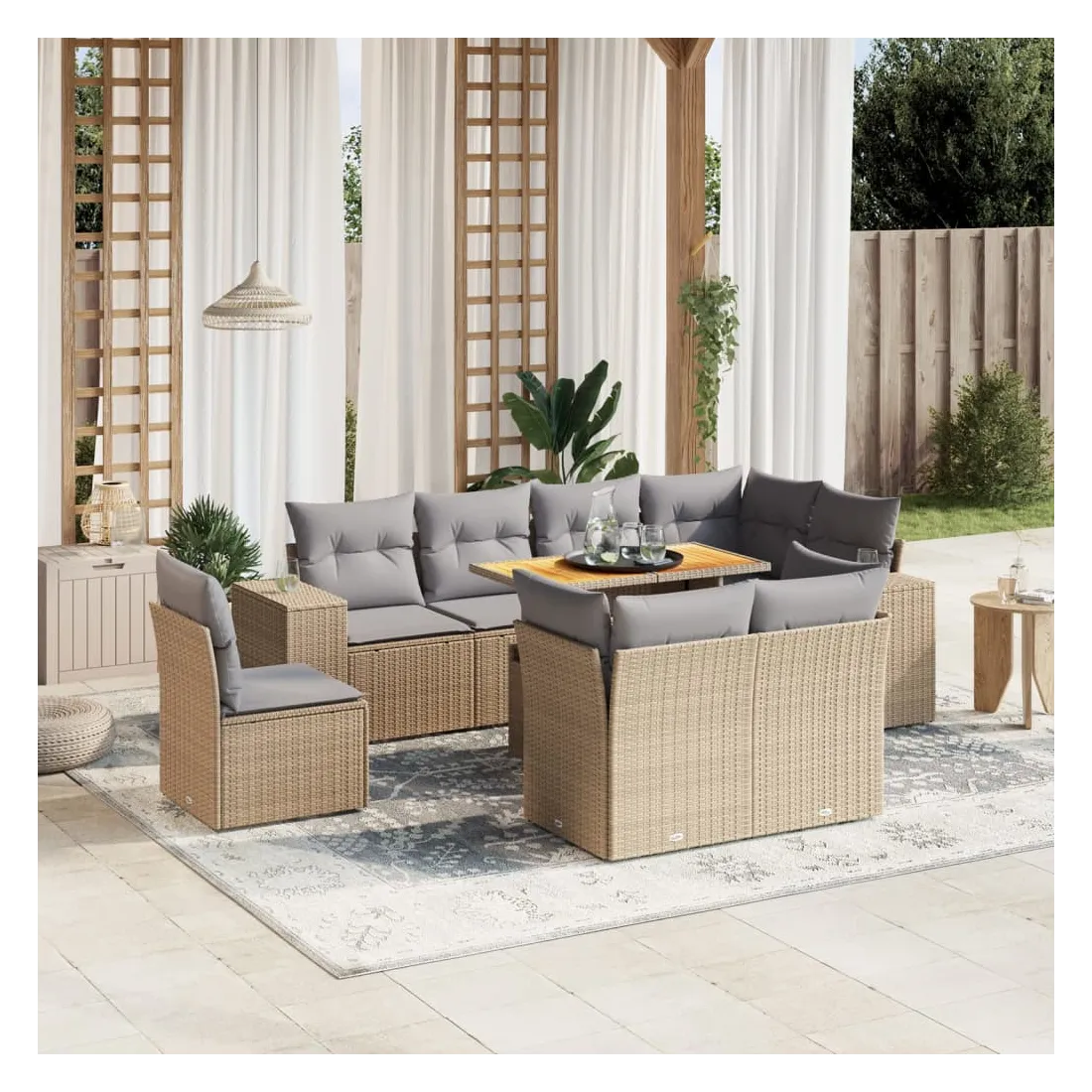Cet ensemble de canapés de jardin est le complément parfait de votre arrière-cour, terrasse ou patio, offrant un espace confortable et accueillant pour discuter avec la famille et les amis ou simplement se détendre et profiter de l'extérieur. Matériau durable : la résine tressée, également connue sous le nom de poly rotin, est un matériau synthétique solide et nécessitant peu d'entretien qui ressemble au rotin naturel. Il est léger, facile à nettoyer et couramment utilisé pour les meubles d'extérieur en raison de sa durabilité et de ses propriétés de résistance aux intempéries.Dessus de table réglable : le dessus de table peut être soulevé pour rendre la table plus haute, ce qui transforme la table d'extérieur d'une table basse à une table de salle à manger. Elle est parfaite pour recevoir des invités ou prendre des repas à l'extérieur.Expérience d'assise confortable : ce mobilier d'extérieur, doté de coussins épais, offre une expérience d'assise confortable.Housse amovible et lavable : ces coussins de siège sont dotés de housses amovibles pour un lavage et un entretien faciles.Conception modulaire : cet ensemble de meubles d'extérieur a une conception modulaire, ce qui le rend complètement flexible et facile à déplacer, afin que vous puissiez créer un agencement de meubles d'extérieur personnalisé. Bon à savoir :Pour que vos meubles d'extérieur restent beaux, nous vous recommandons de les protéger avec une housse imperméable.